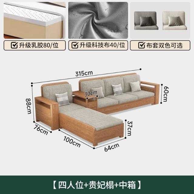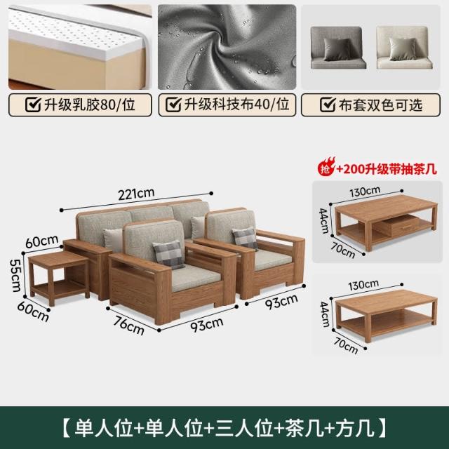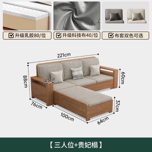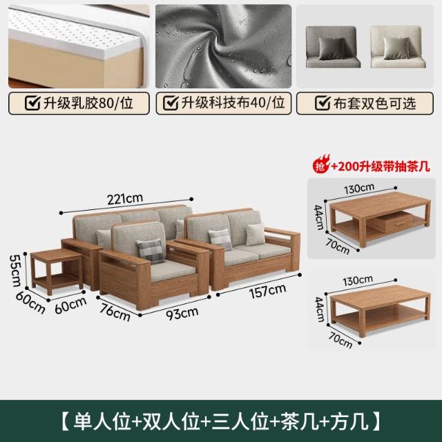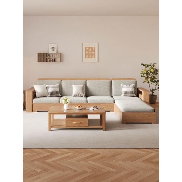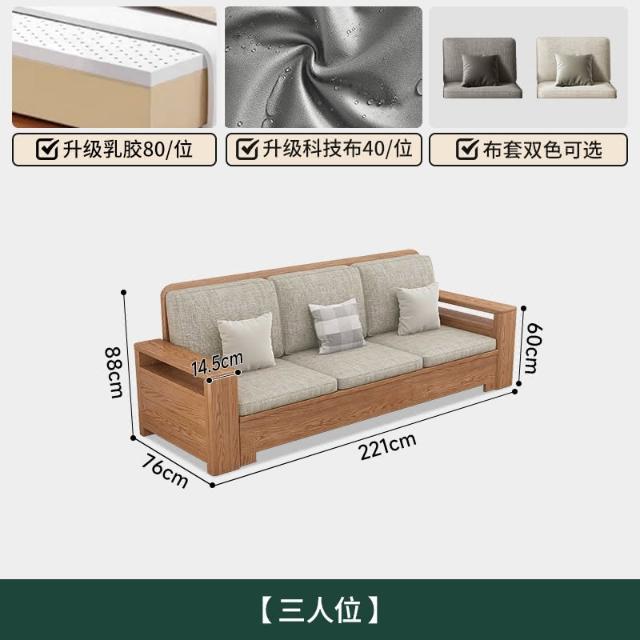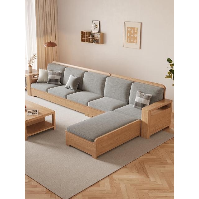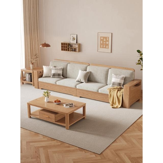 北歐風全實木沙發組合白蠟木布藝沙發現代簡約小戶型客廳原木傢俱