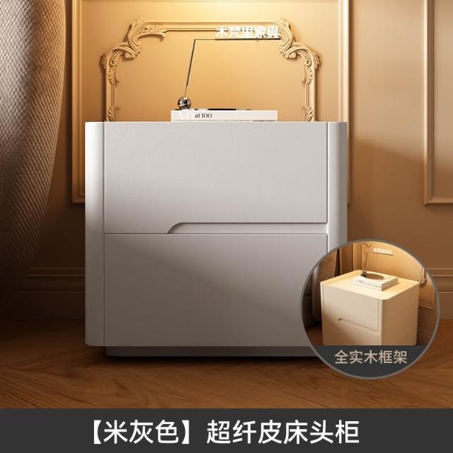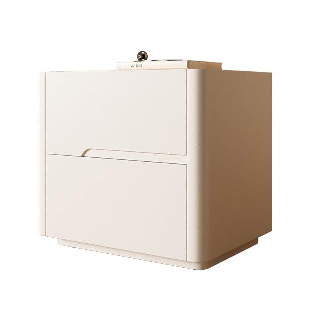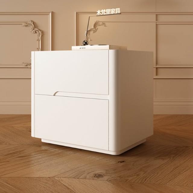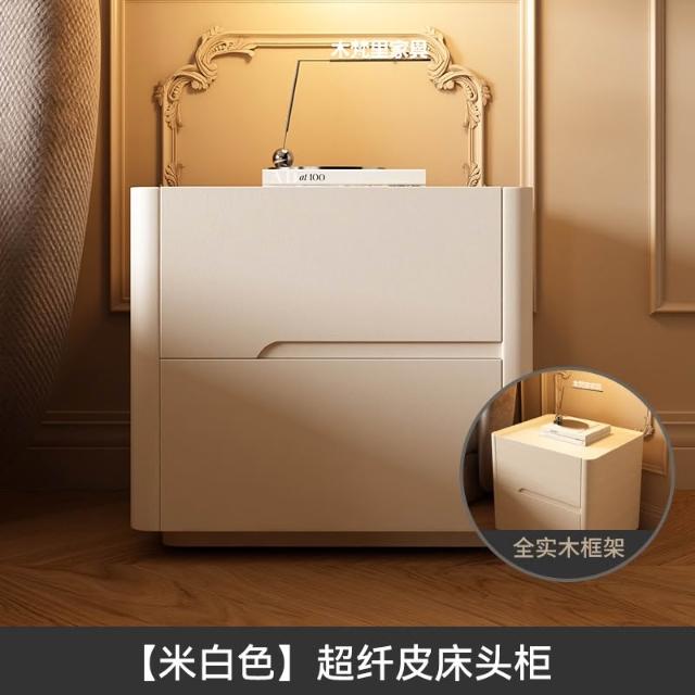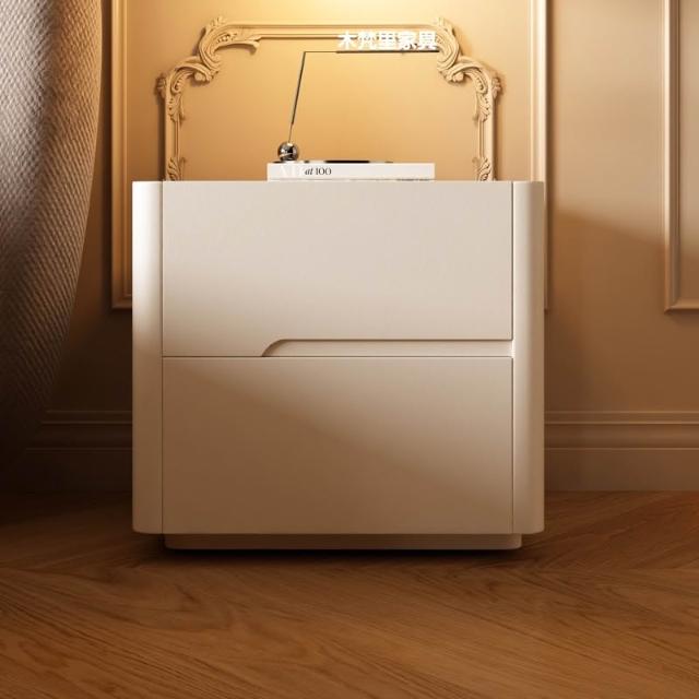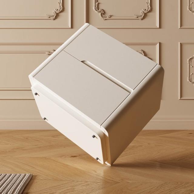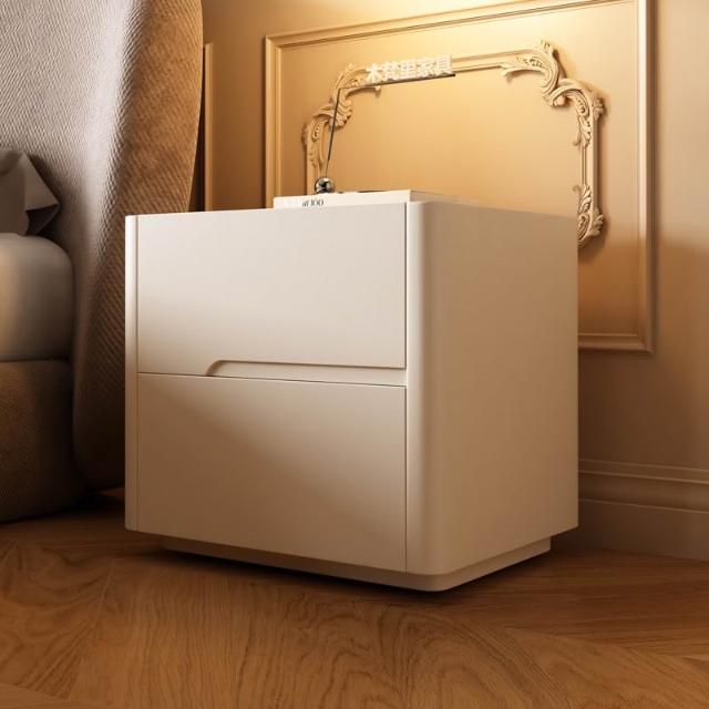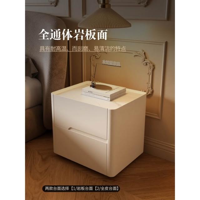 奶油風床頭櫃收納盒現代簡約全實木輕奢卧室家用岩板儲物櫃免安裝