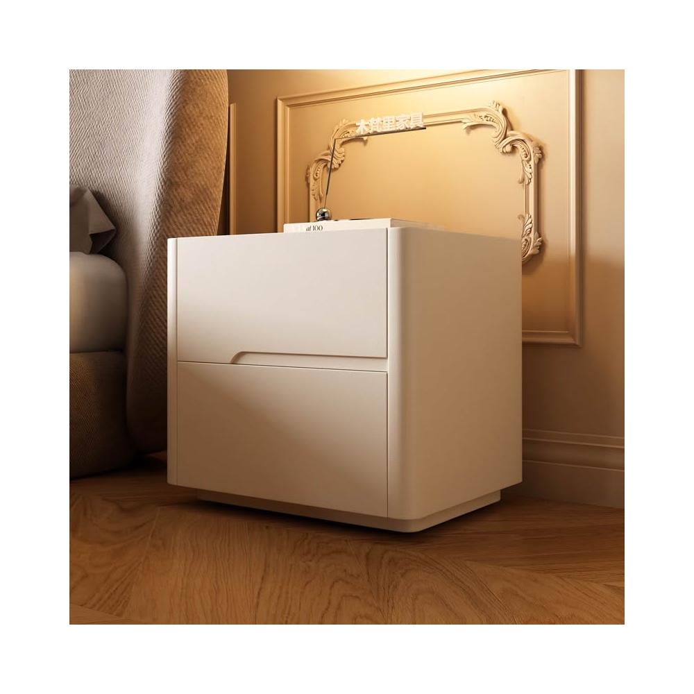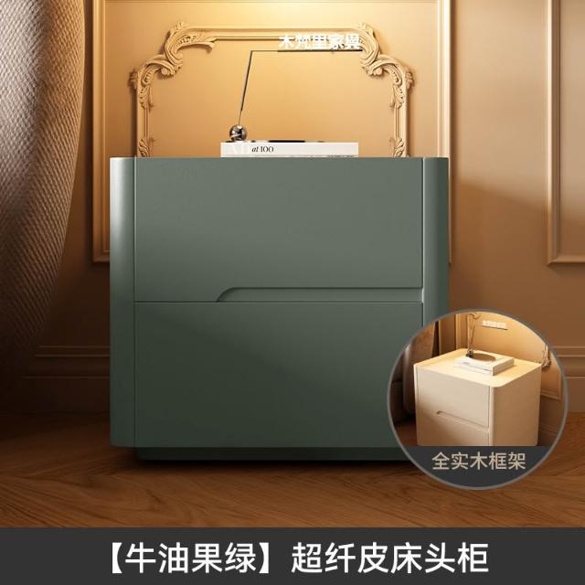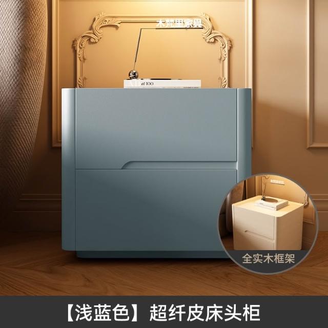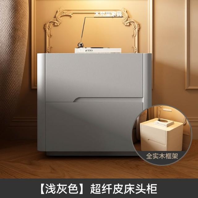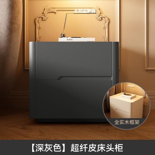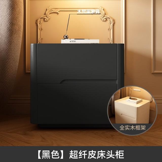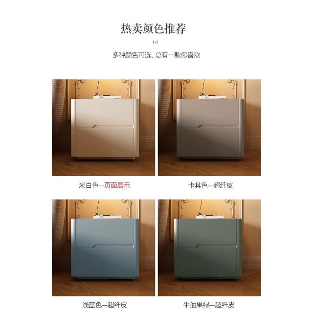 奶油風床頭櫃收納盒現代簡約全實木輕奢卧室家用岩板儲物櫃免安裝