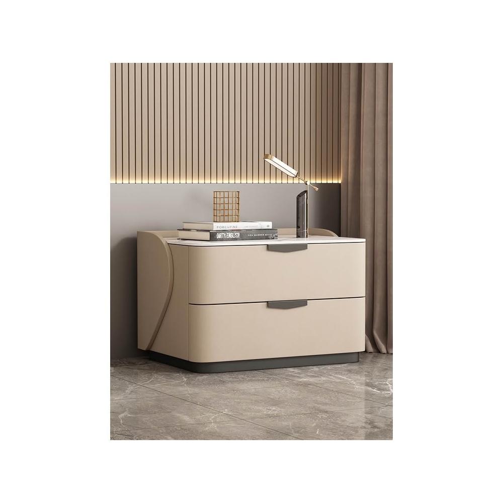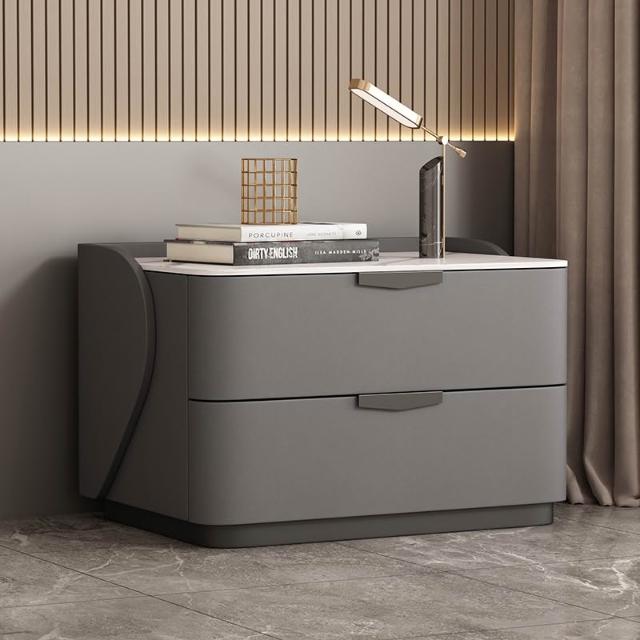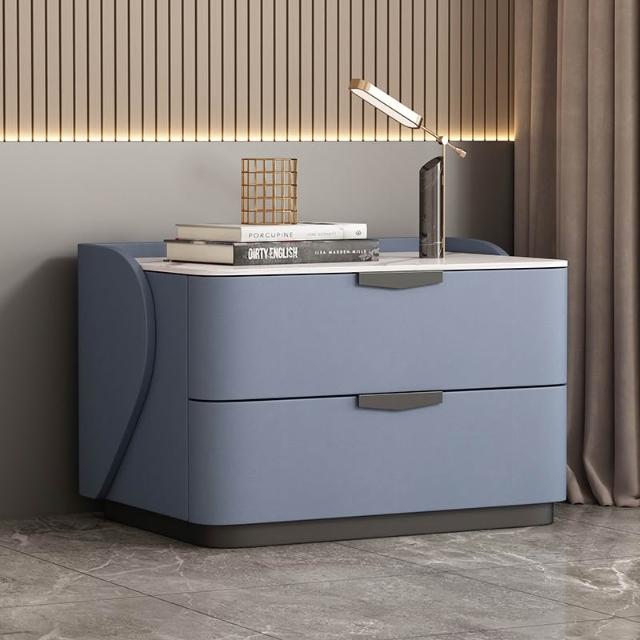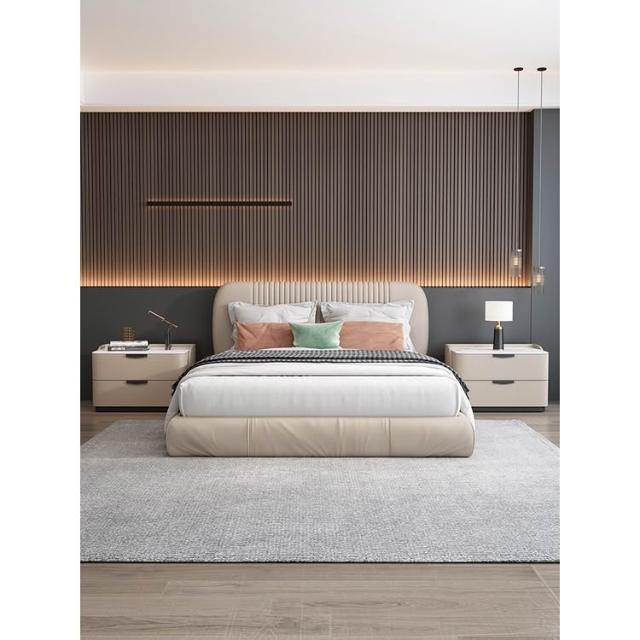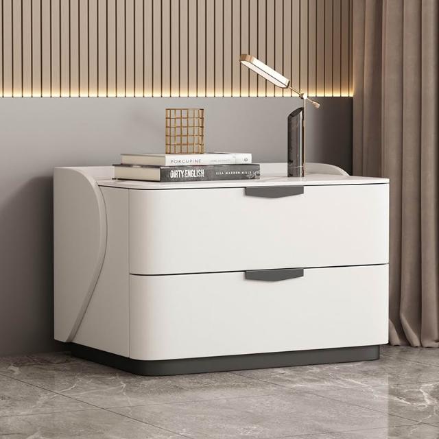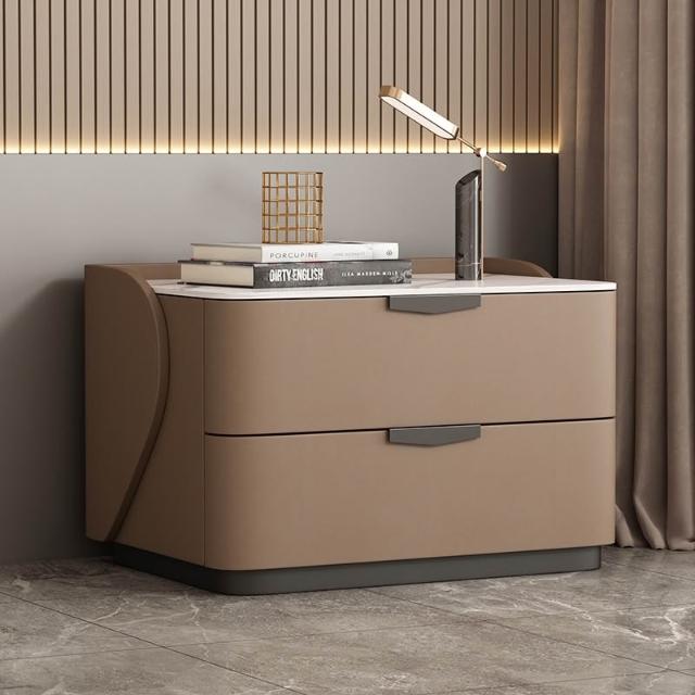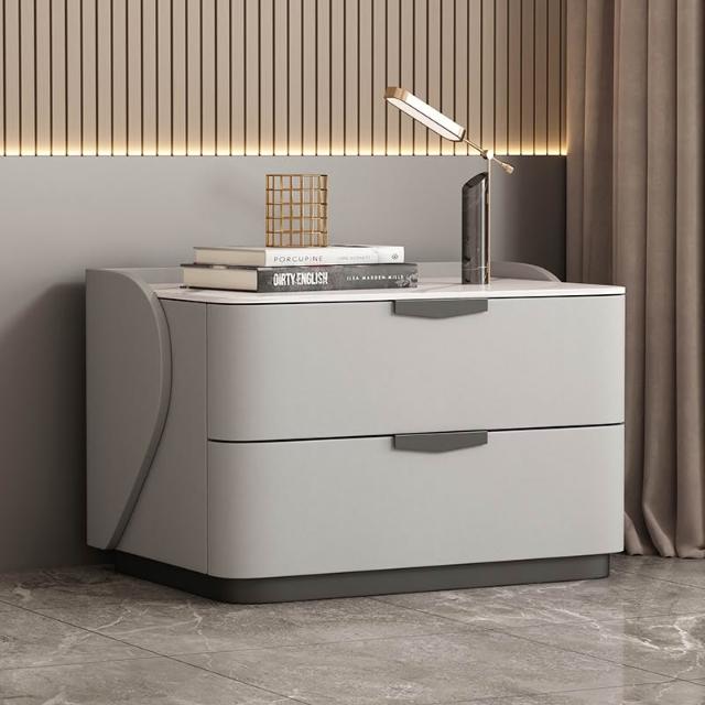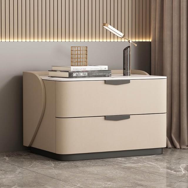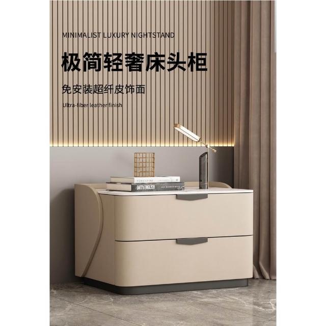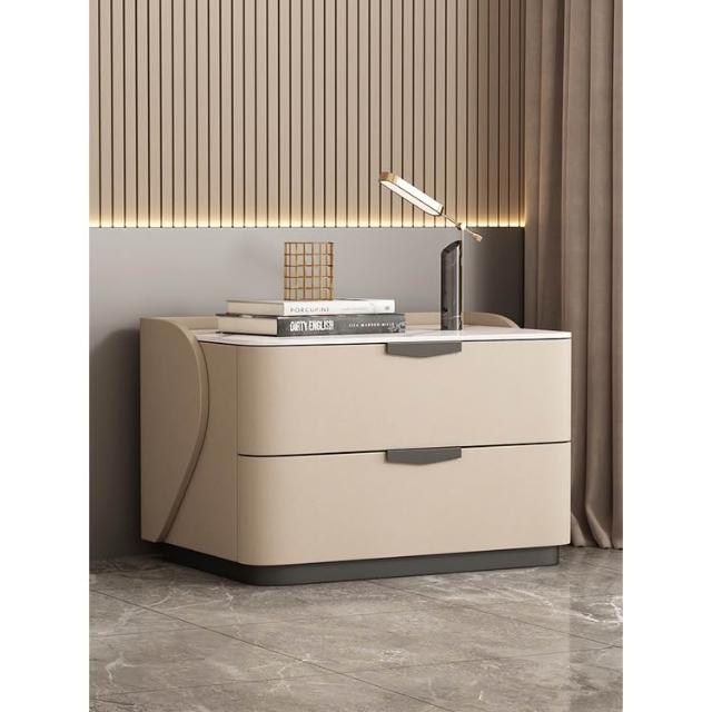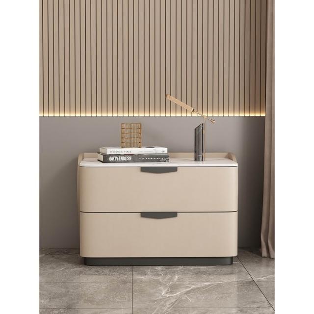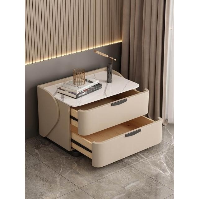 高級感實木床頭櫃輕奢現代簡約意式岩板皮質奶油風極簡邊櫃免安裝