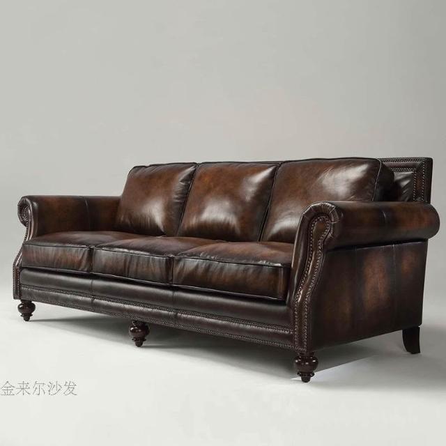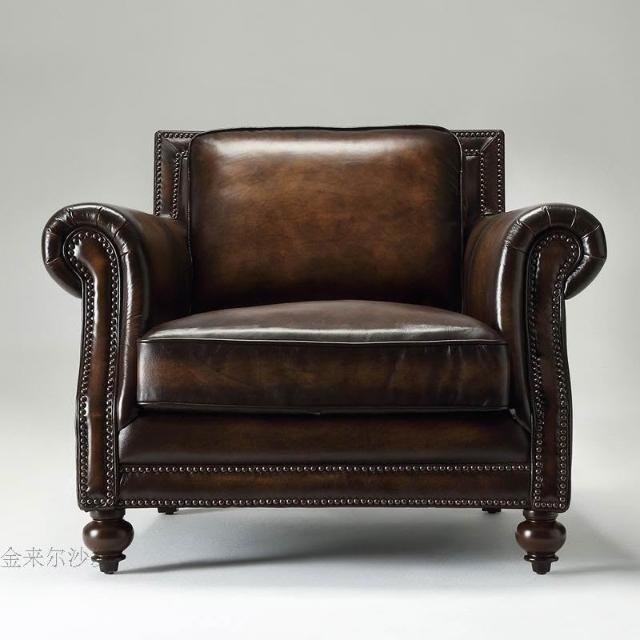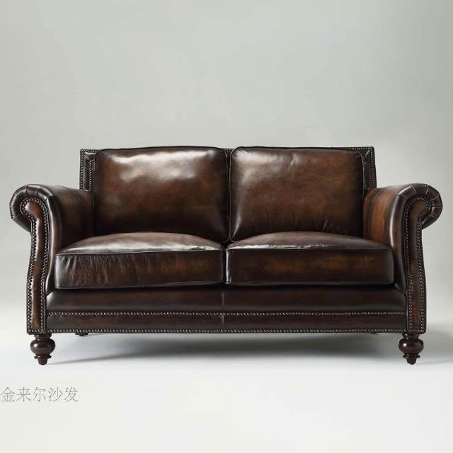 美式復古真皮沙發 歐式皮藝單雙三人沙發 客廳傢俱油蠟皮沙發