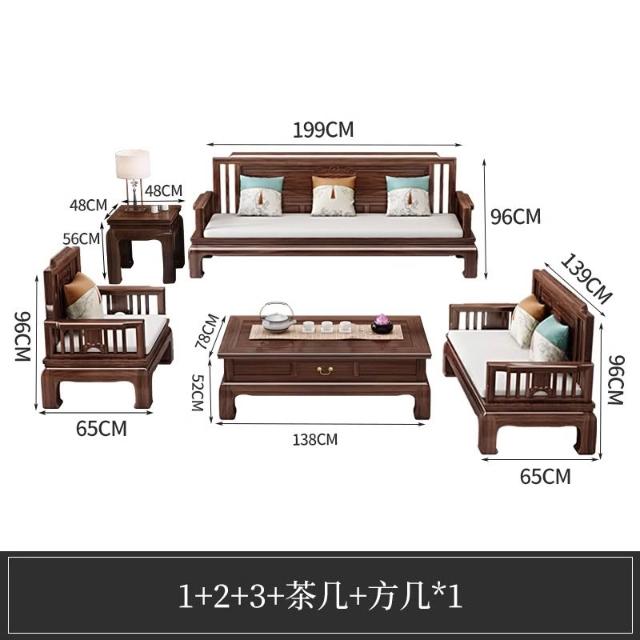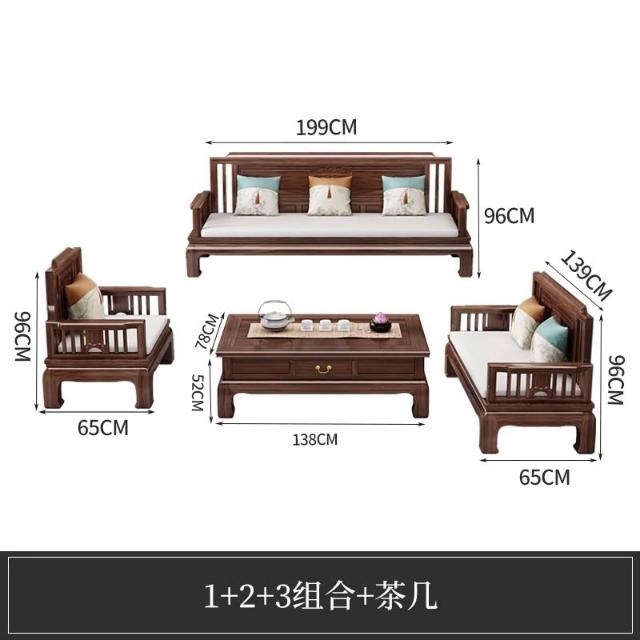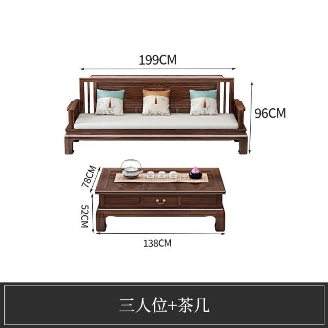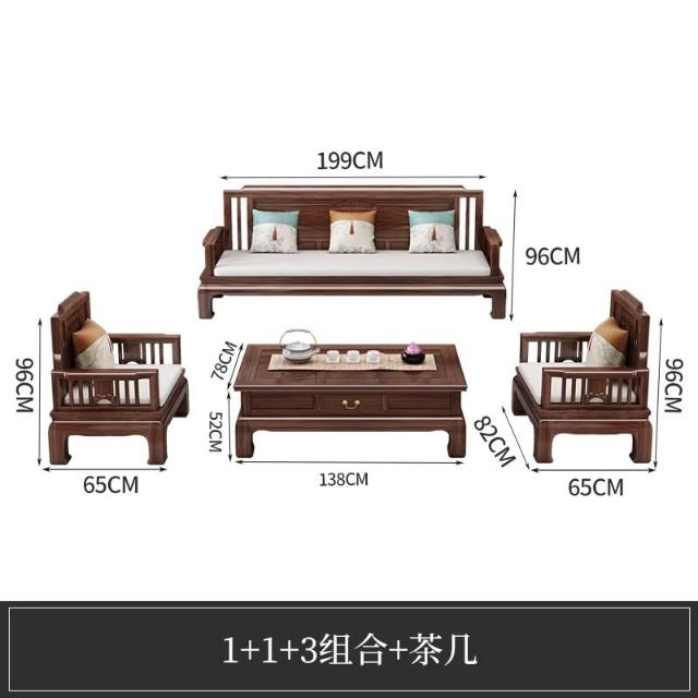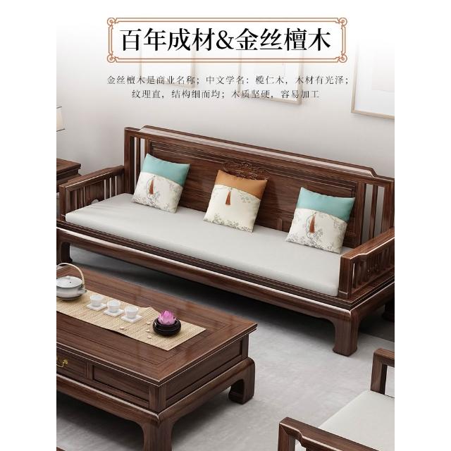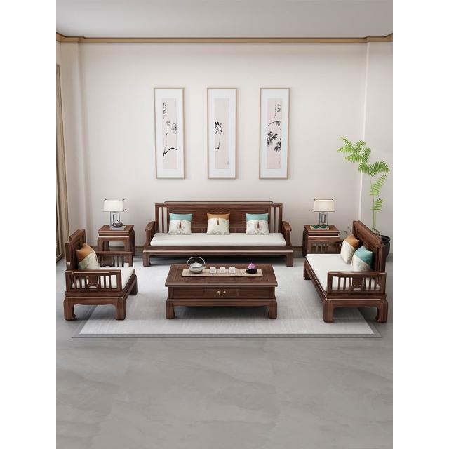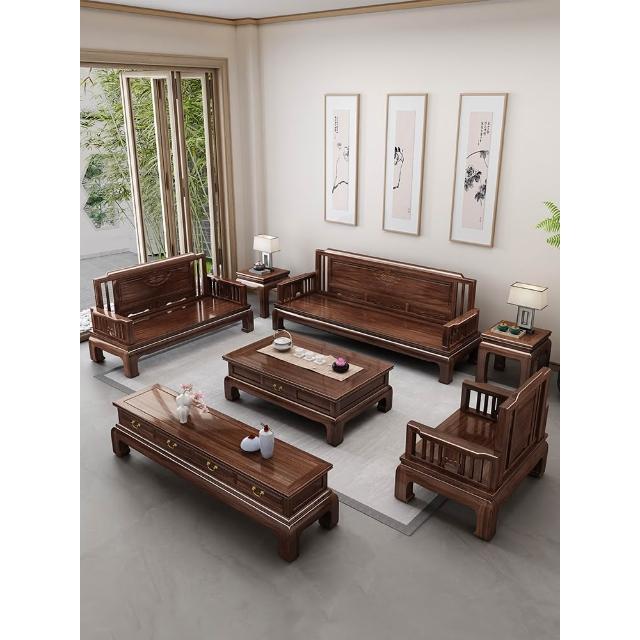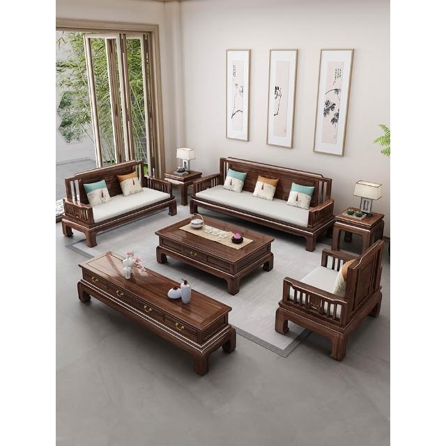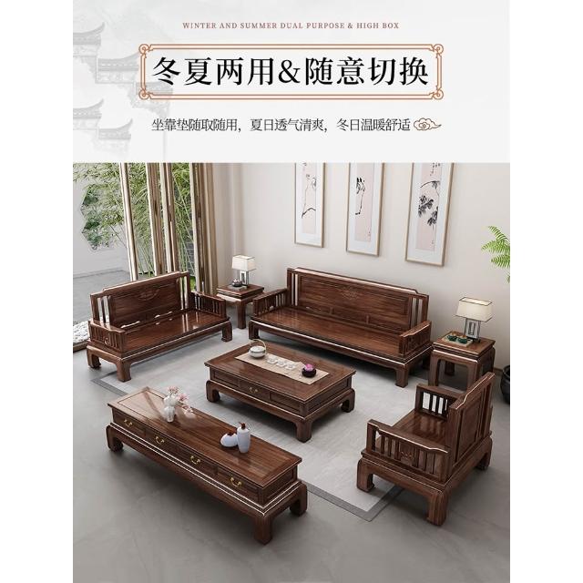 雕花古典新中式實木沙發組合禪意仿紅木冬夏兩用大小戶型客廳傢俱