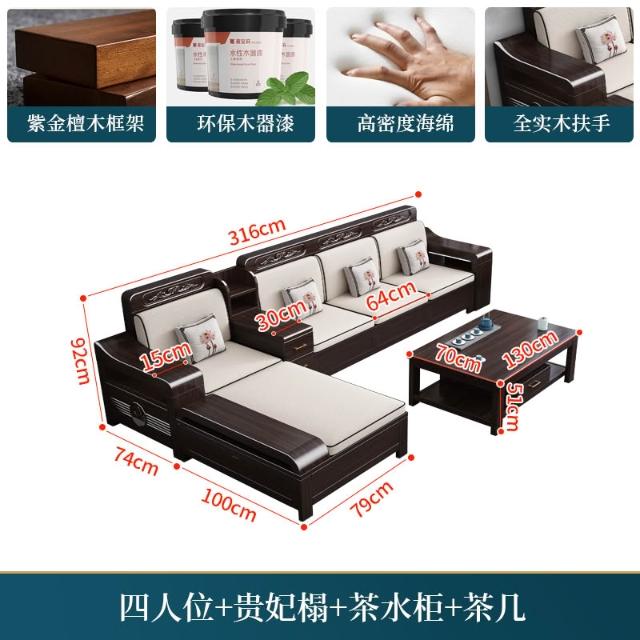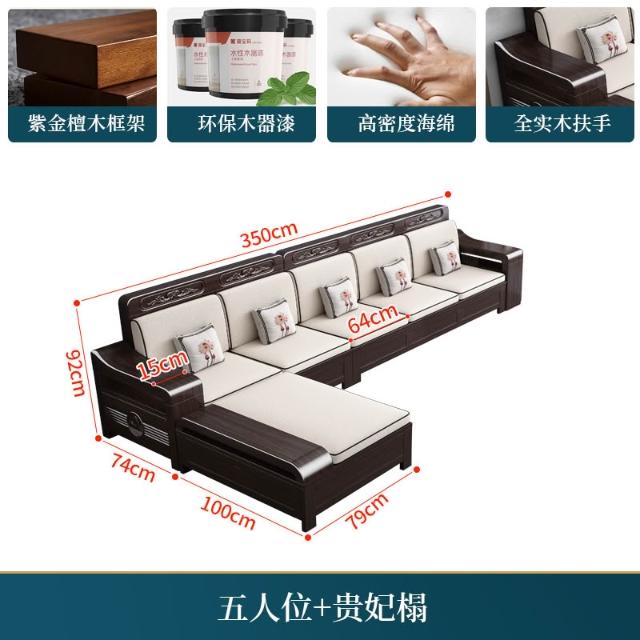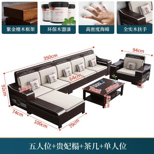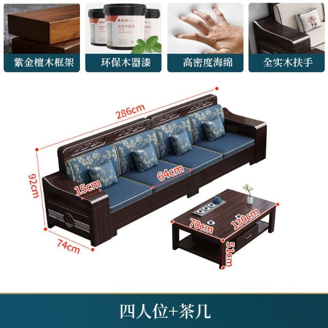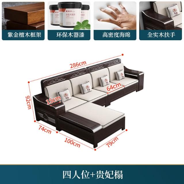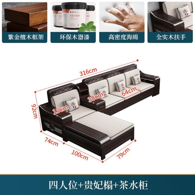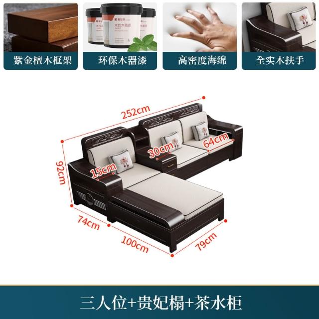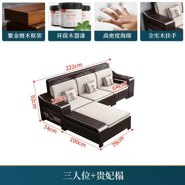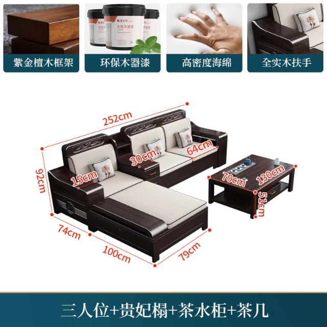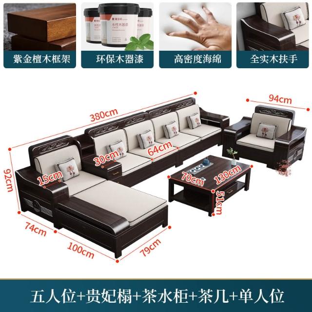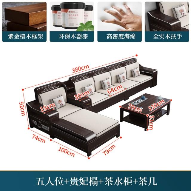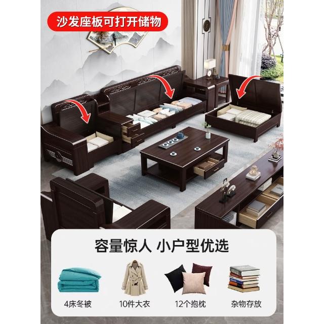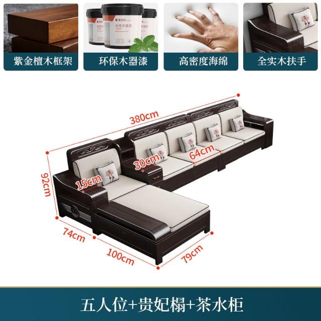 中式紫金檀木實木沙發簡約現代組合大小戶型冬夏兩用客廳高箱儲物