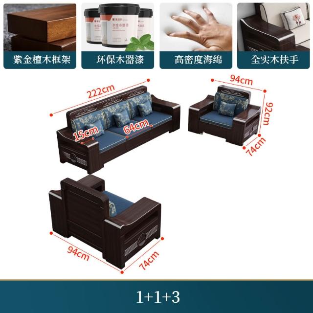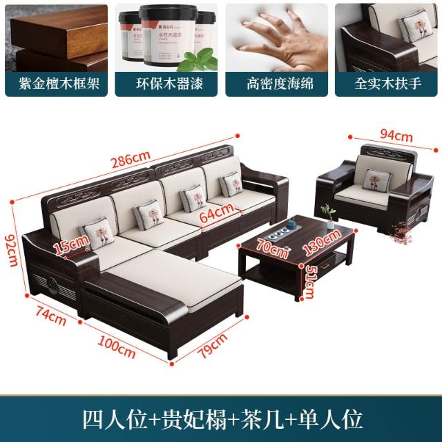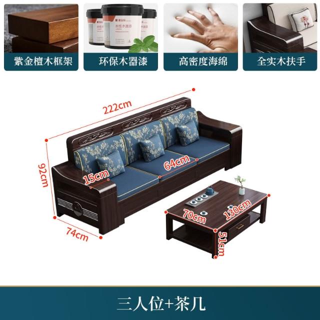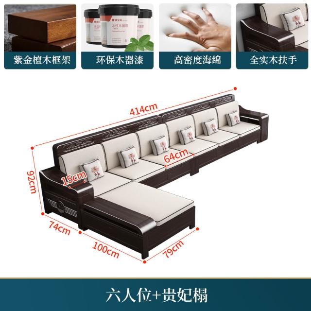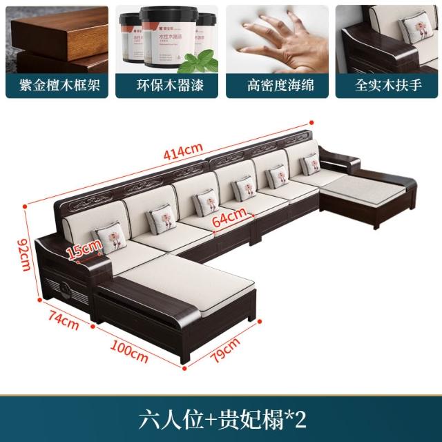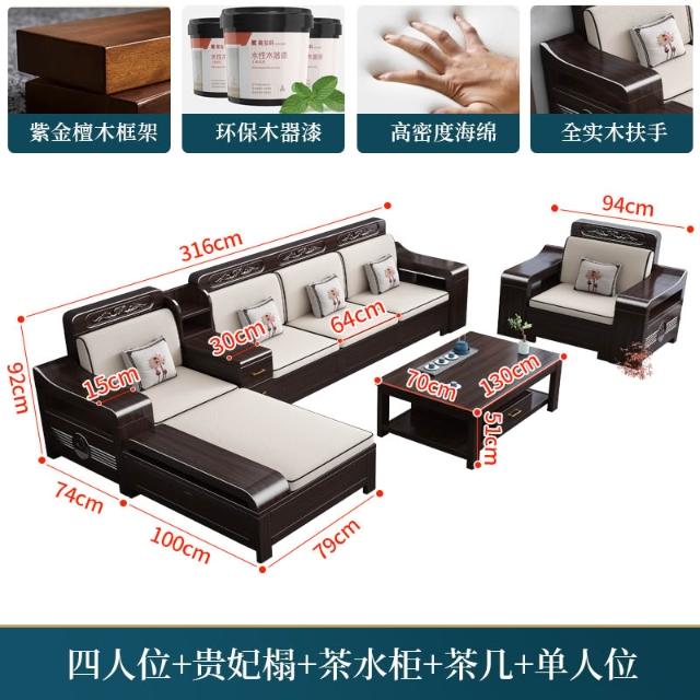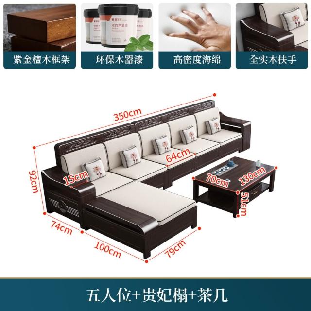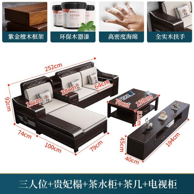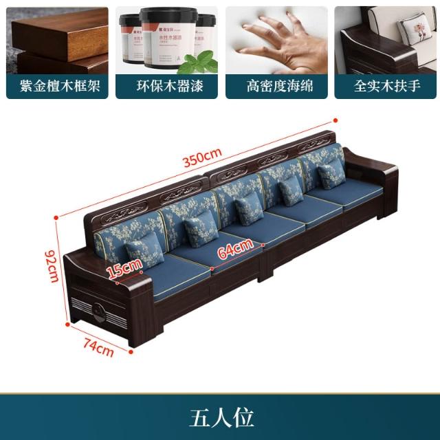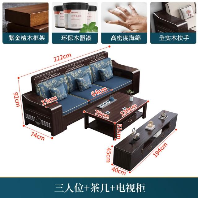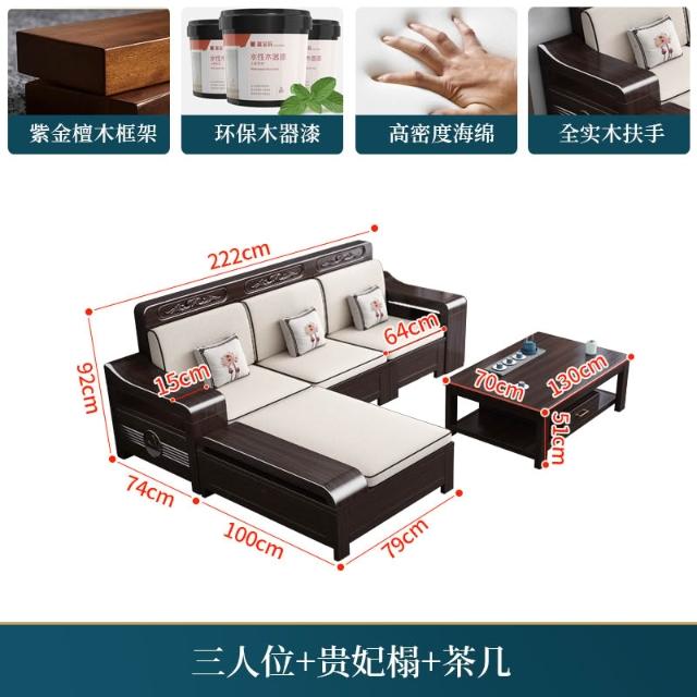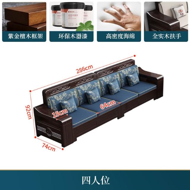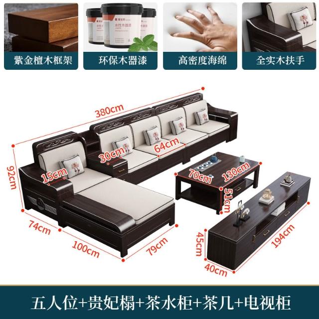 中式紫金檀木實木沙發簡約現代組合大小戶型冬夏兩用客廳高箱儲物