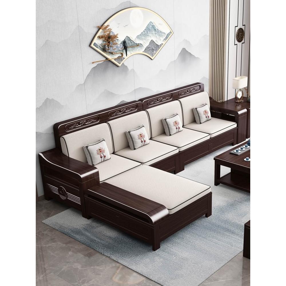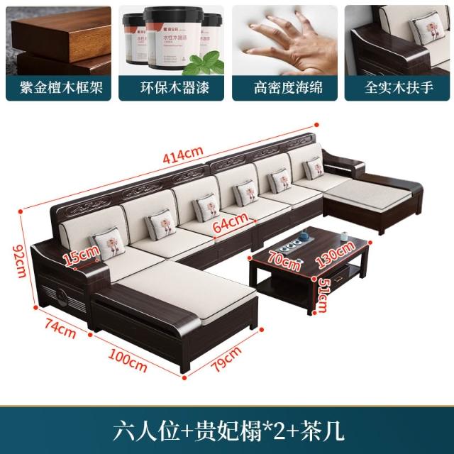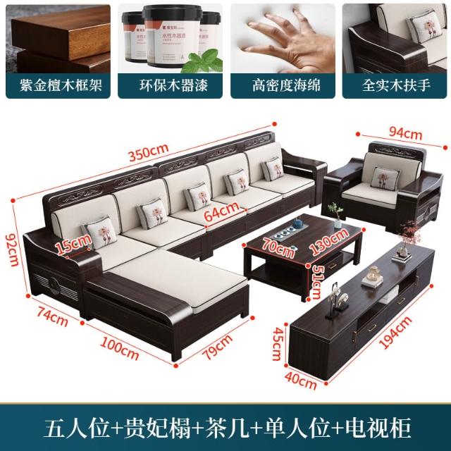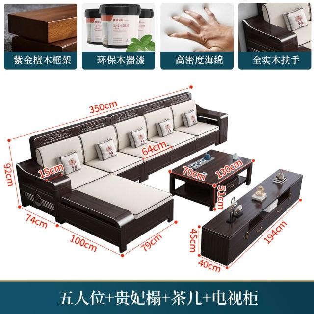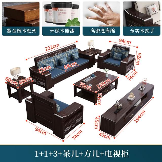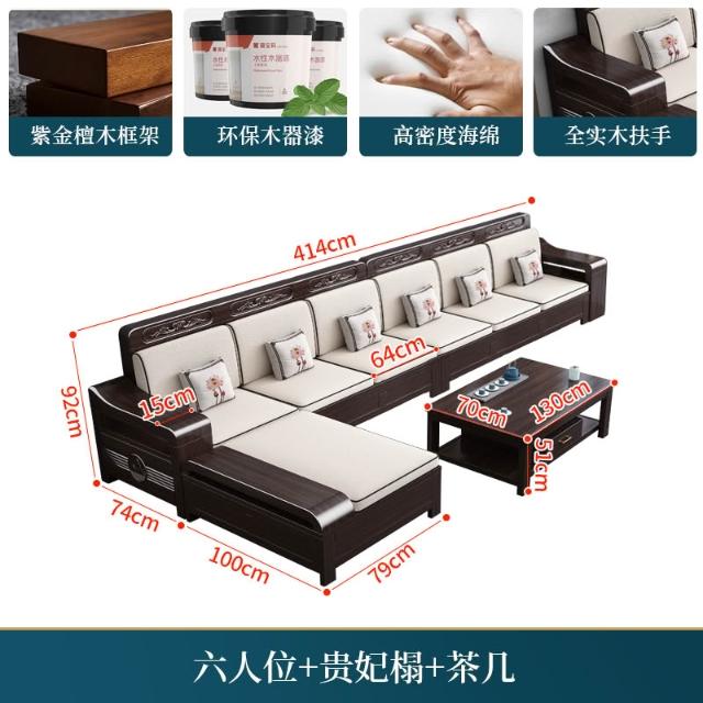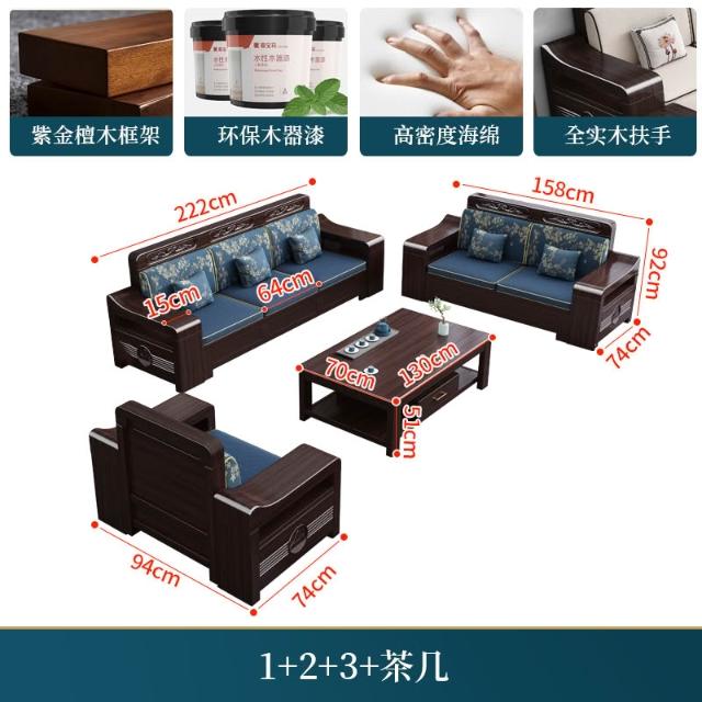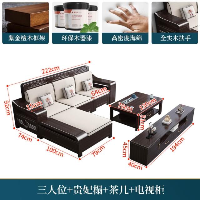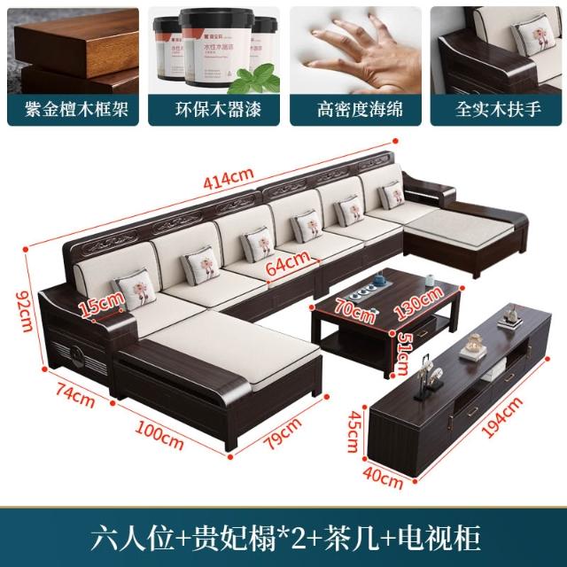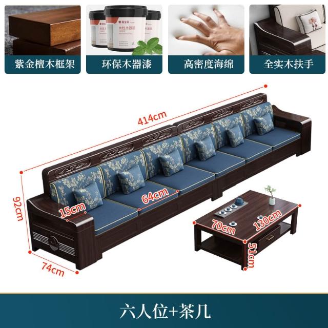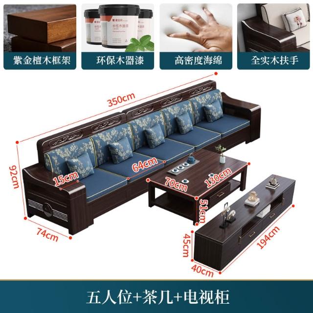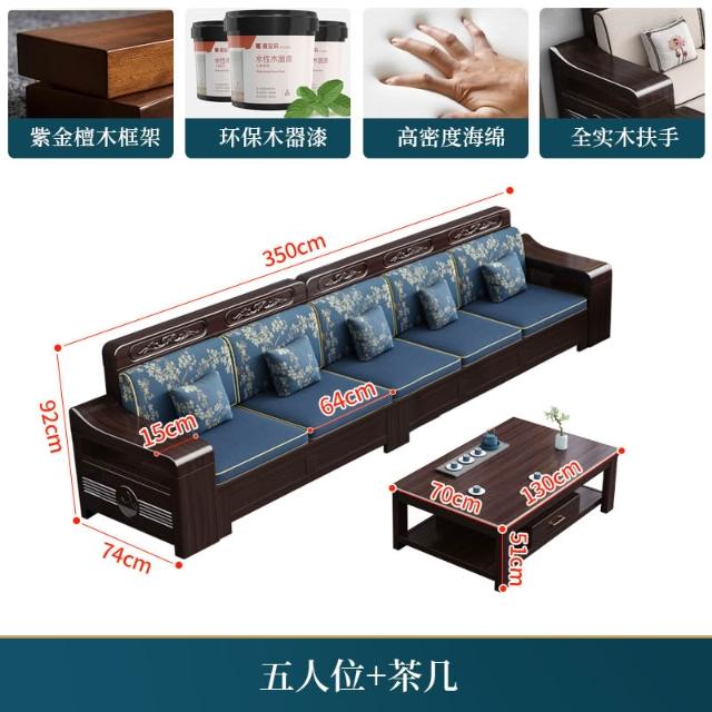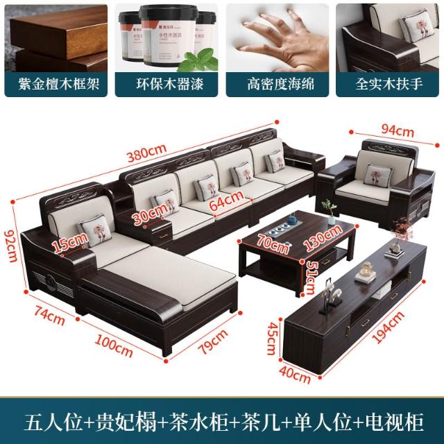 中式紫金檀木實木沙發簡約現代組合大小戶型冬夏兩用客廳高箱儲物