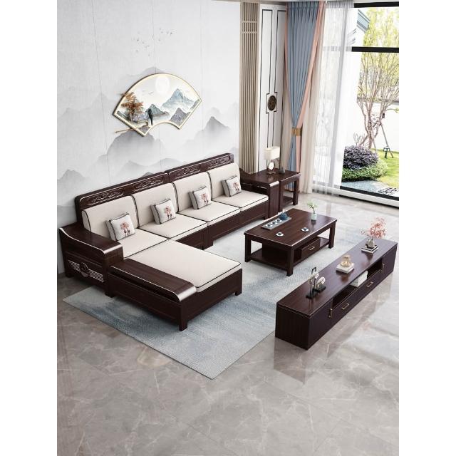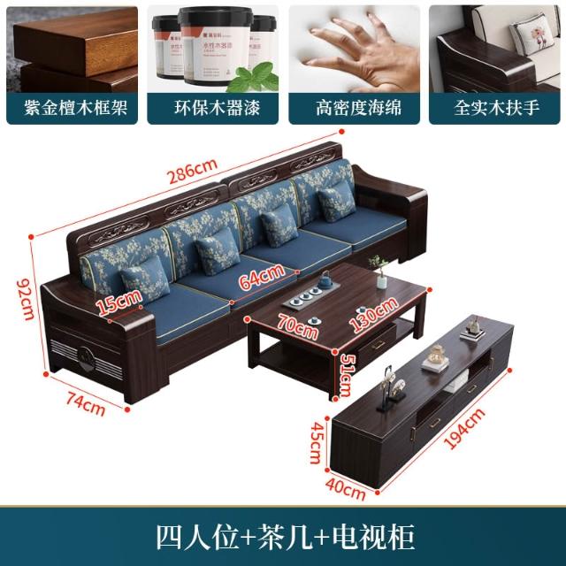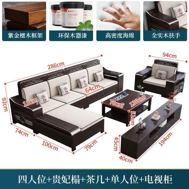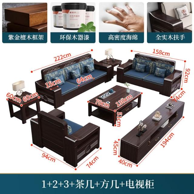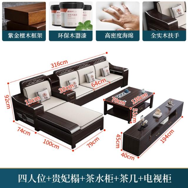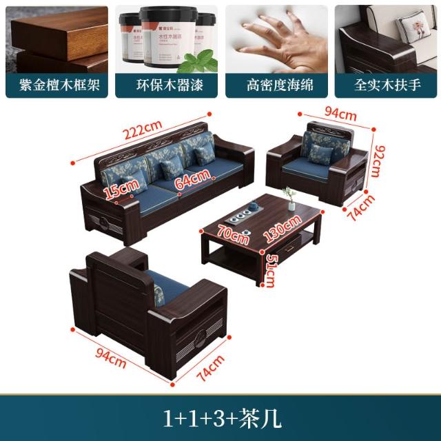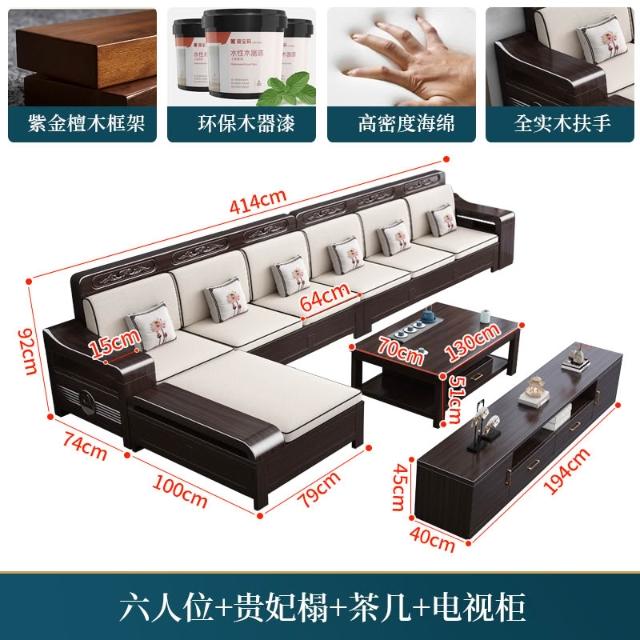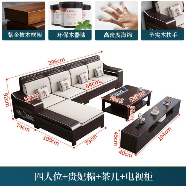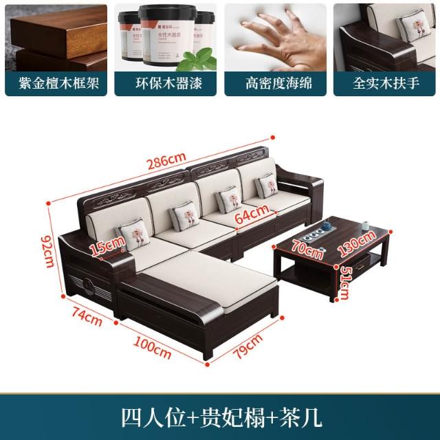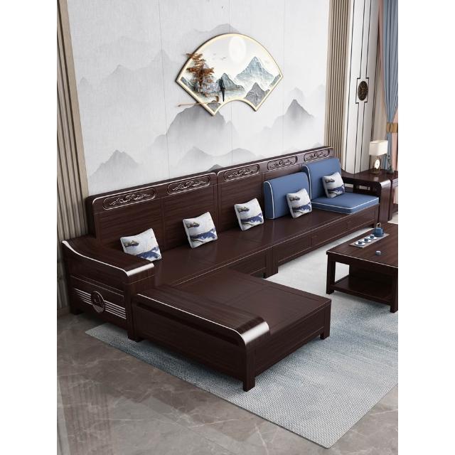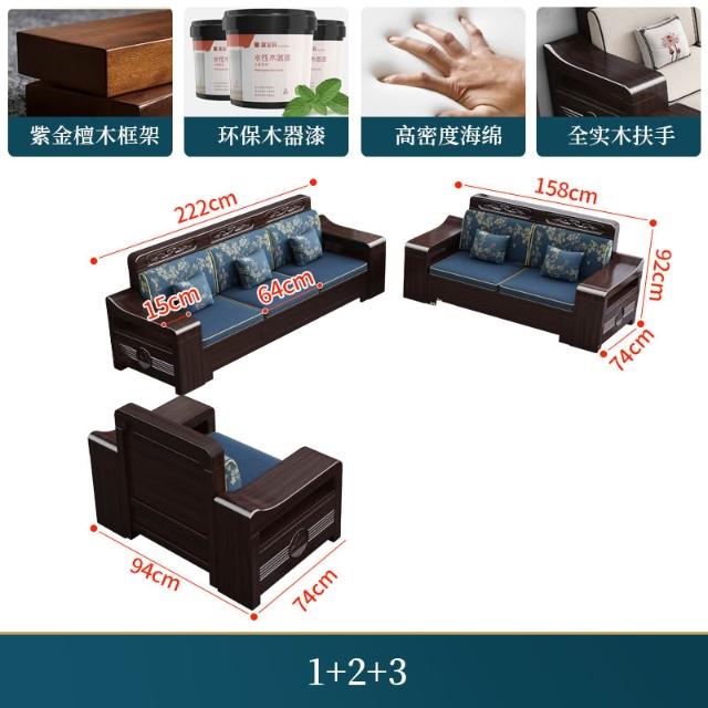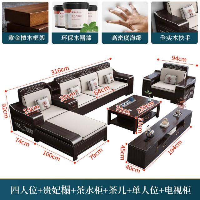 中式紫金檀木實木沙發簡約現代組合大小戶型冬夏兩用客廳高箱儲物