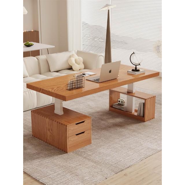 全實木電動可升降茶几餐桌兩用茶桌家用茶臺帶抽屜儲物櫃