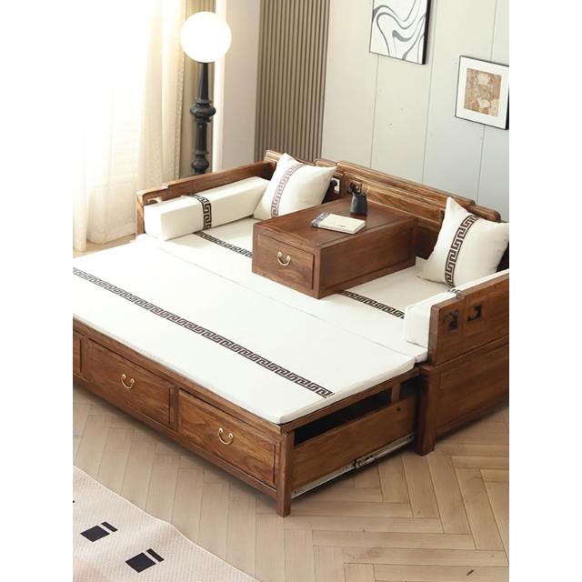 羅漢床推拉床老榆木羅漢床實木新中式沙發床兩用小戶型可伸縮傢俱