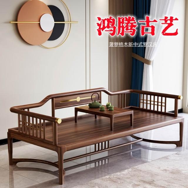 鳳梨格木羅漢床榫卯結構現代沙發床冬夏兩用全實木新中式羅漢榻