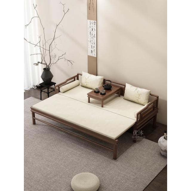 新中式禪意實木羅漢床客廳茶室現代簡約黑胡桃木羅漢床小戶型沙發