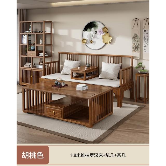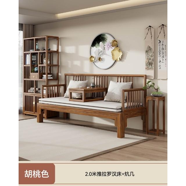 新中式全實木羅漢床明式客廳家用小戶型簡約沙發床兩用禪意羅漢椅