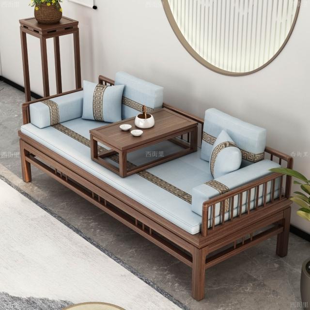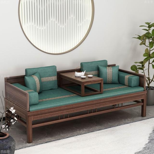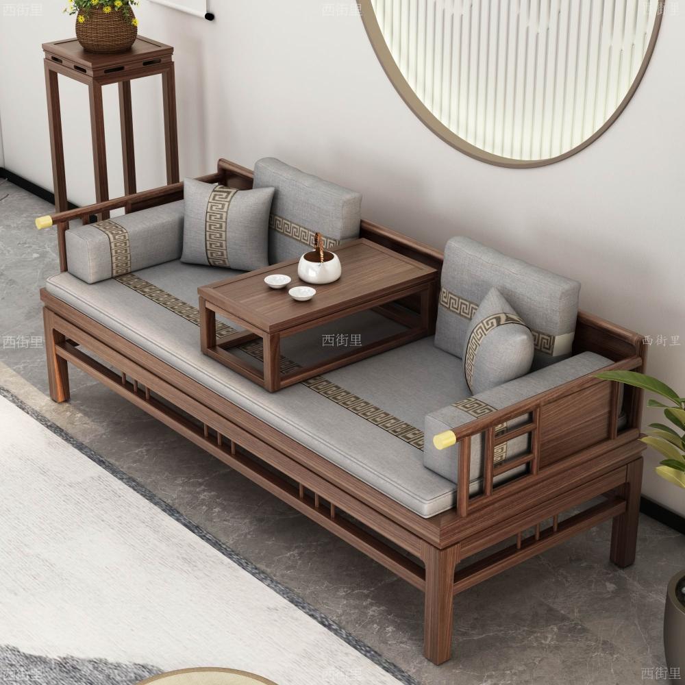 新中式榆木羅漢床小戶型塌榻羅漢床椅茶桌椅組合全實木推拉沙發床