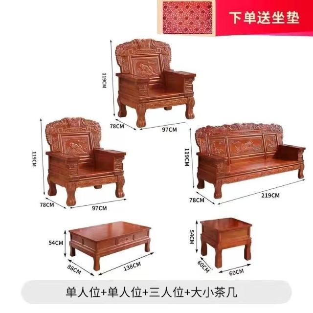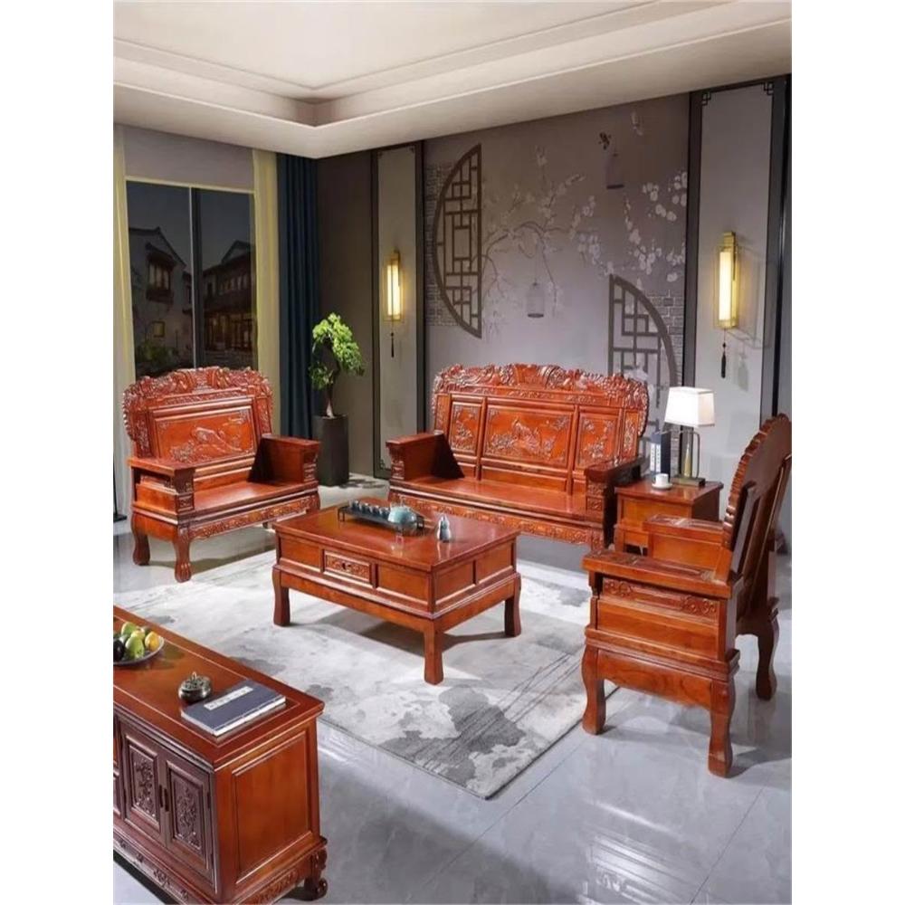 新古典實木沙發紅椿木原木雕花沙發椅客廳家用中式組合木沙發新款