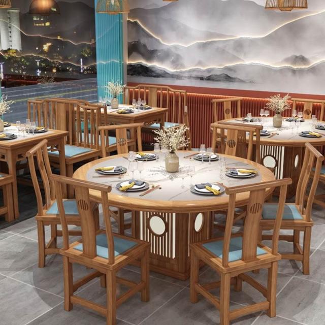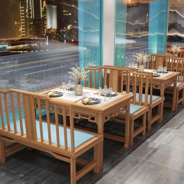 實木新中式國潮湘菜館卡座沙發靠牆主題餐飲茶餐廳桌椅組合商用