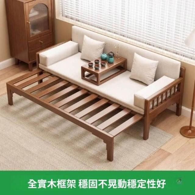 羅漢床全實木新中式客廳小戶型床榻推拉伸縮原木沙發床兩用羅漢床