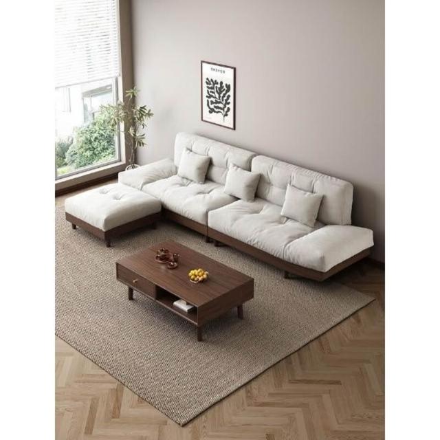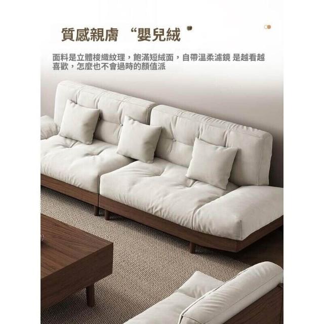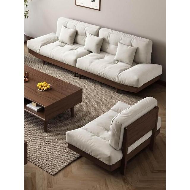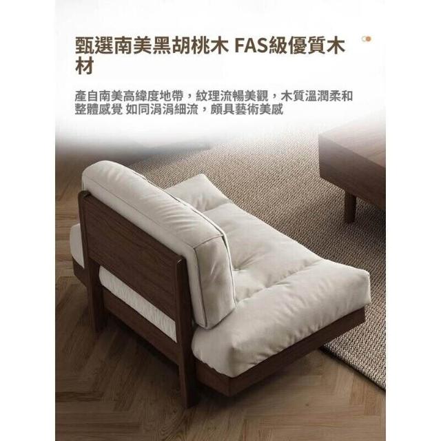 黑胡桃木雲朵實木沙發組合簡約木質布藝三人位沙發小戶型客廳傢俱