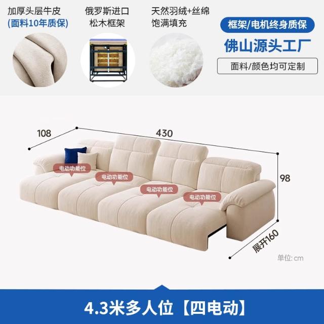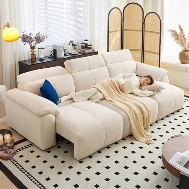電動沙發功能可調節自動伸縮三人位零靠牆客廳小戶型貓抓布平移款