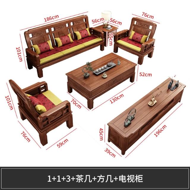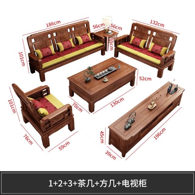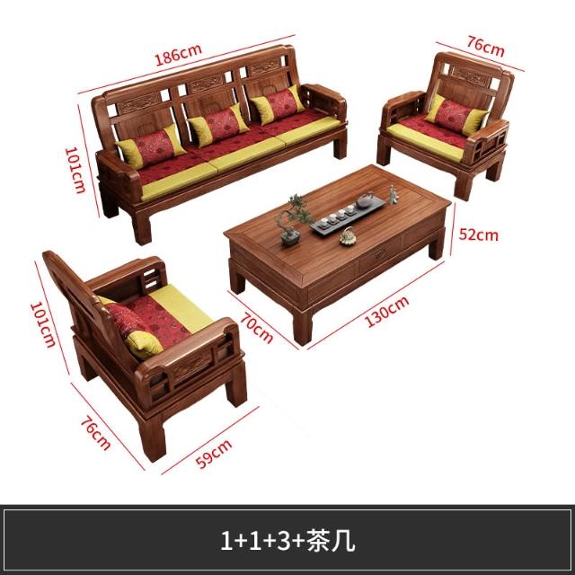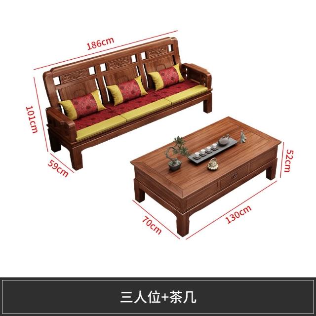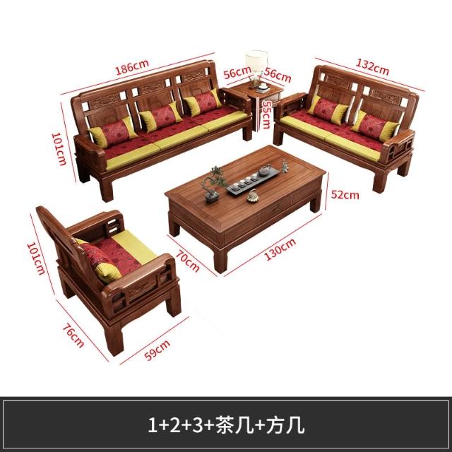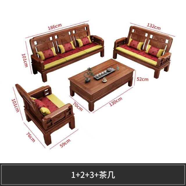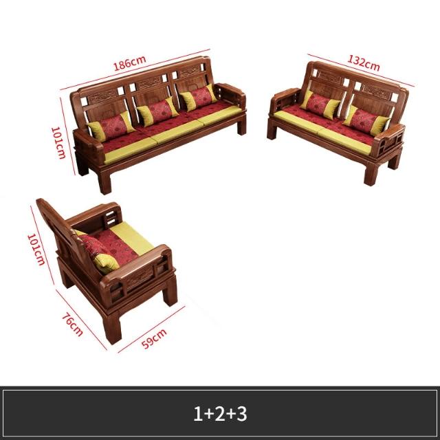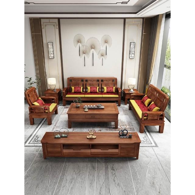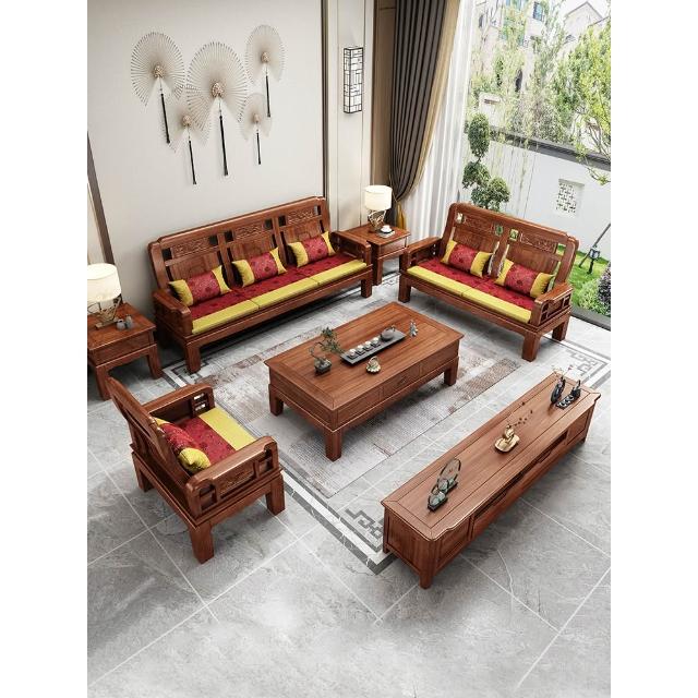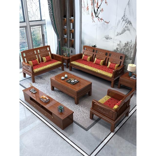 雕花古典中式實木沙發小戶型冬夏兩用明清仿古客廳123仿紅木傢俱