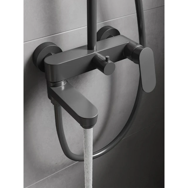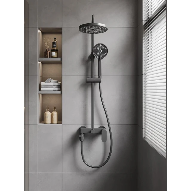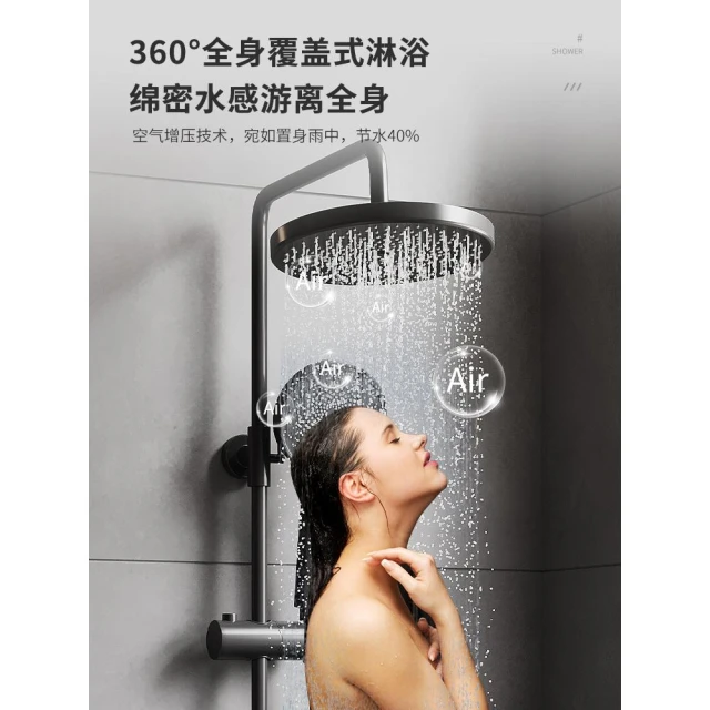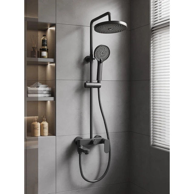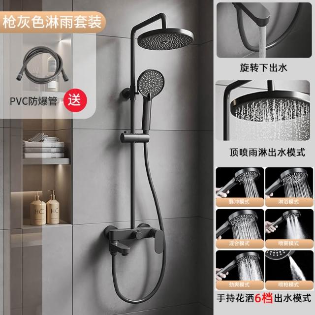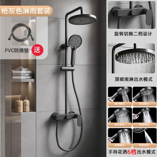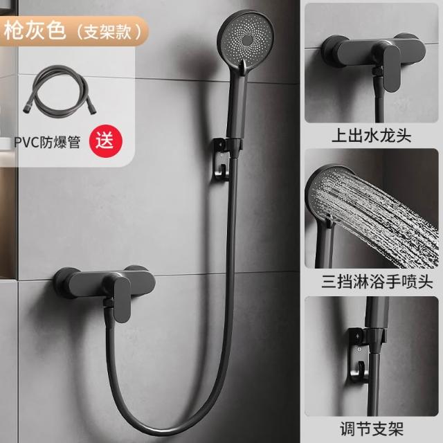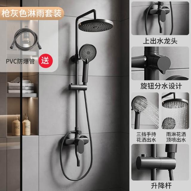 槍灰色淋浴花灑套裝簡易衛生間家用增壓浴室全銅浴缸水龍頭三合一