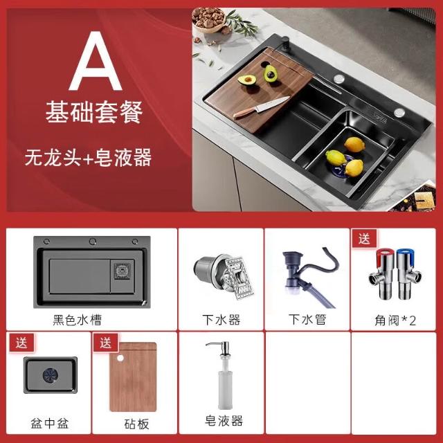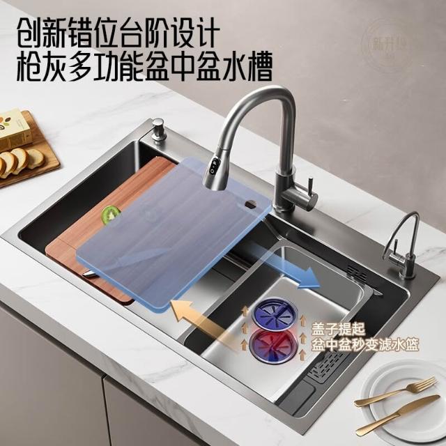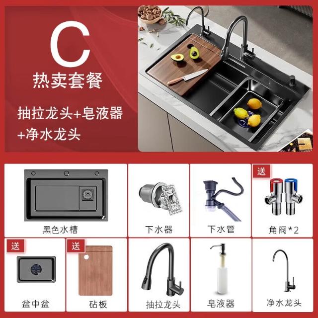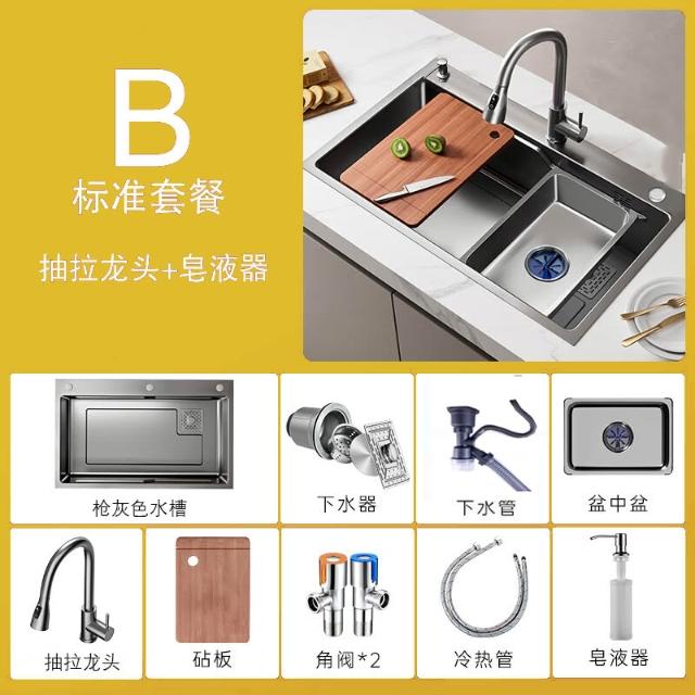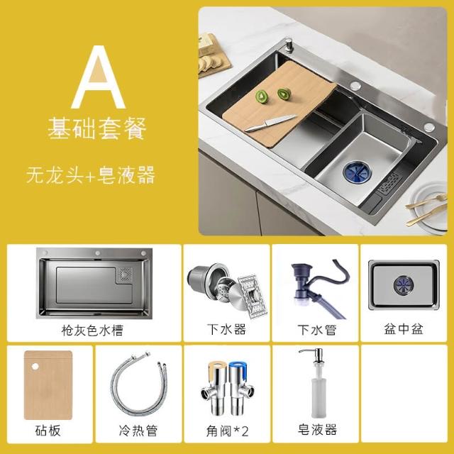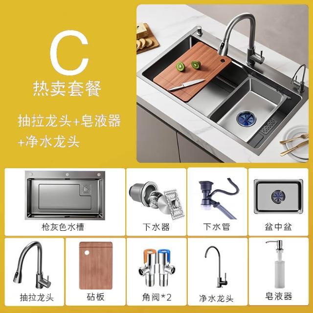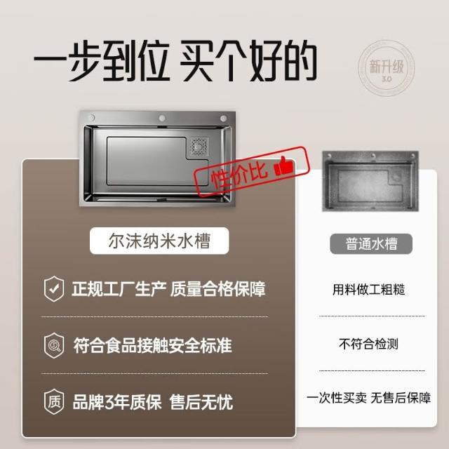 廚房洗菜盆家用加厚手工納米304不銹鋼大單槽洗碗池槽洗菜池水槽