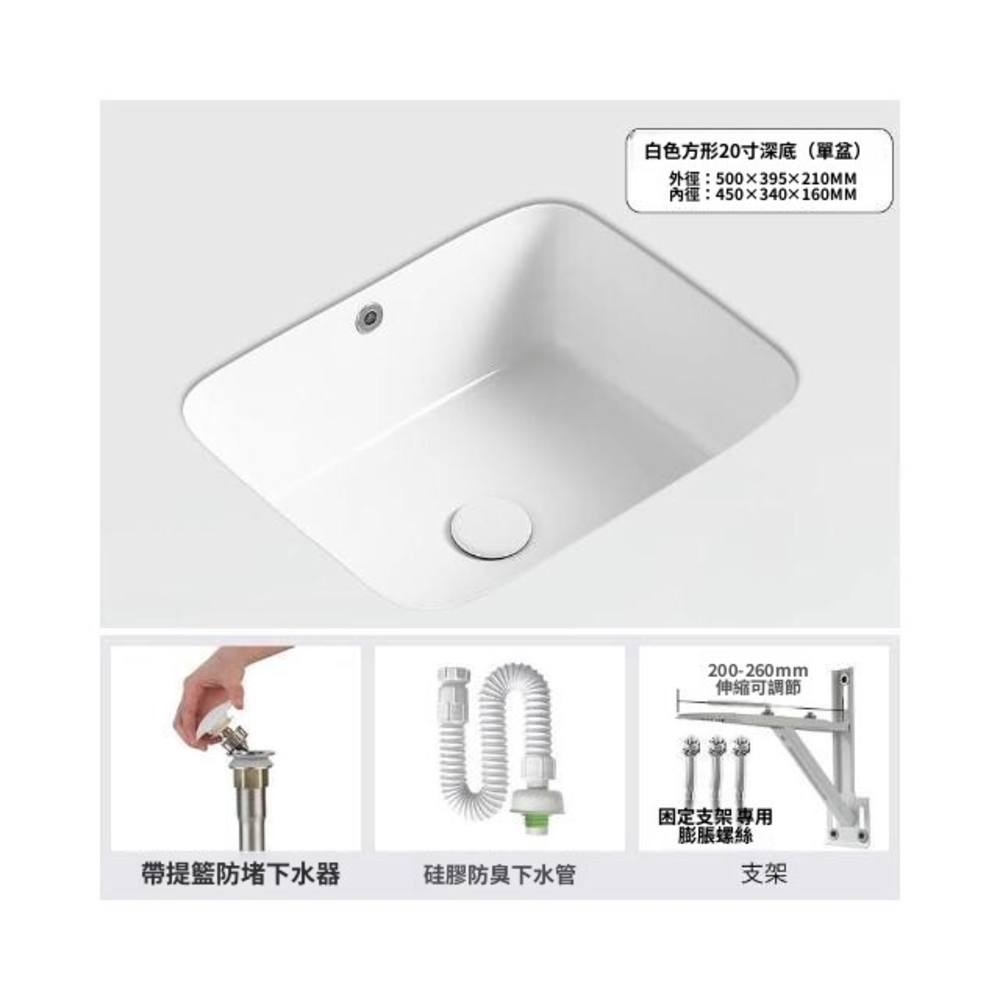 加深平底台下盆嵌入式洗手盆單盆陶瓷方形臉池陽臺衛生間超深面盆