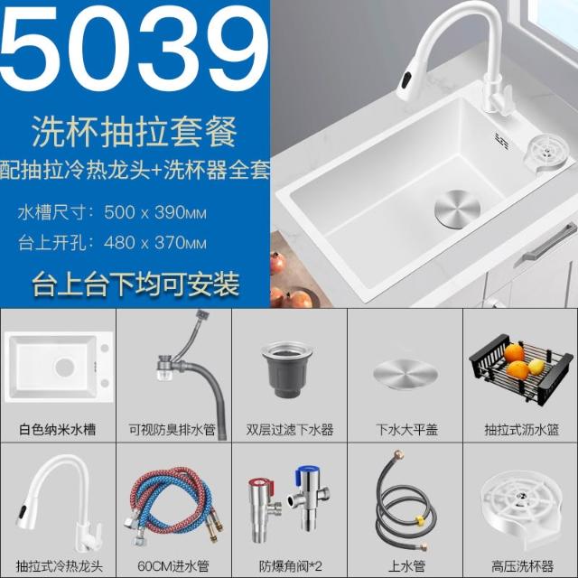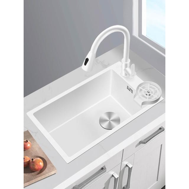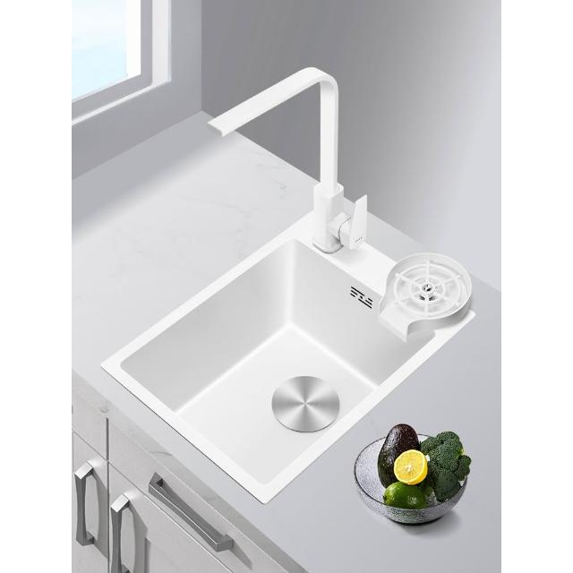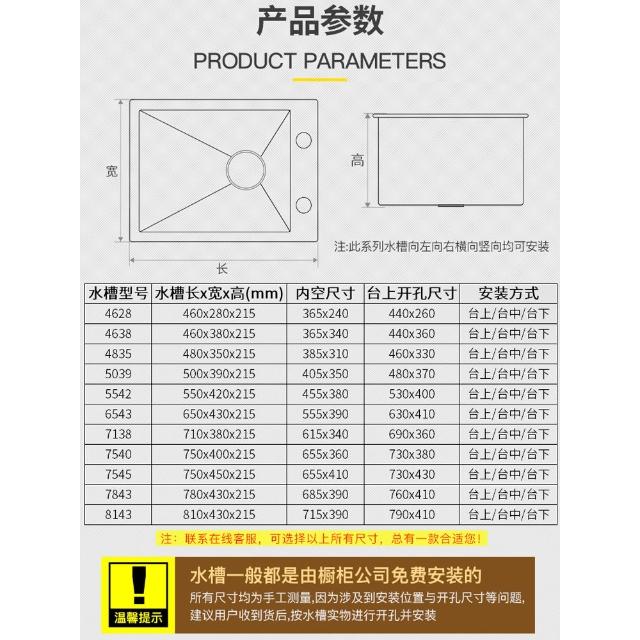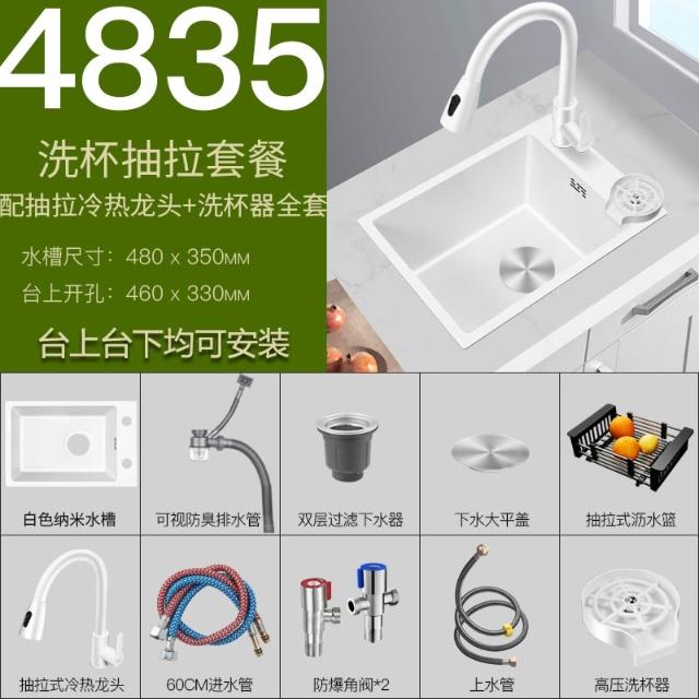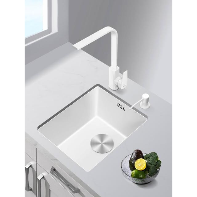 白色廚房側裝不銹鋼水槽單槽小尺寸洗菜盆窄長型吧水臺中島臺水池