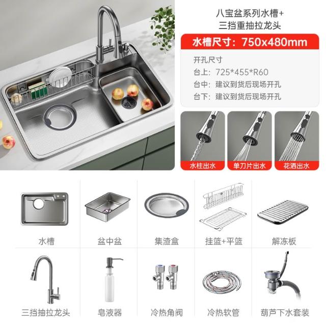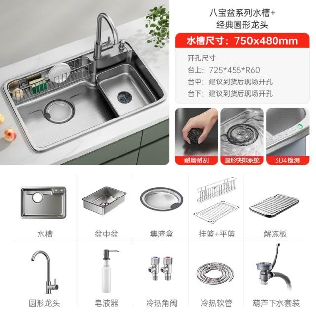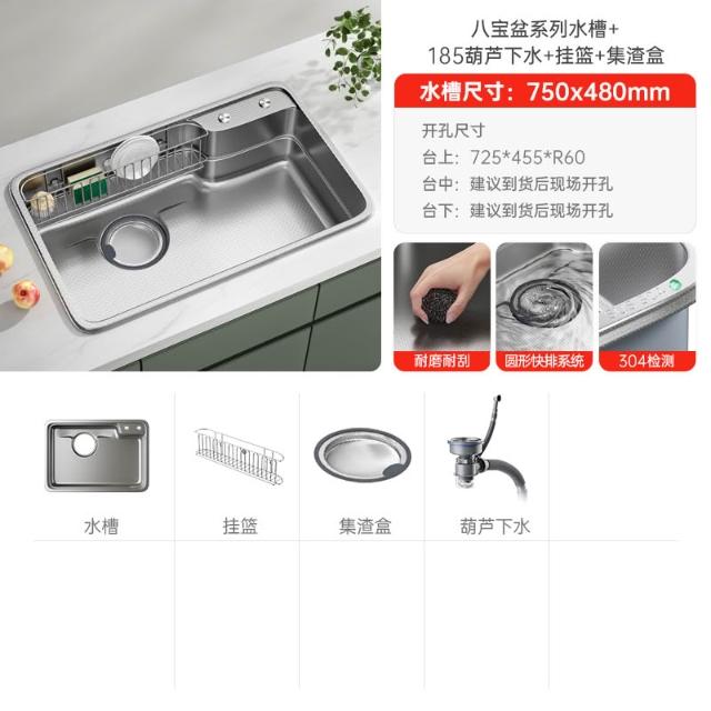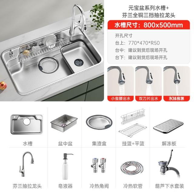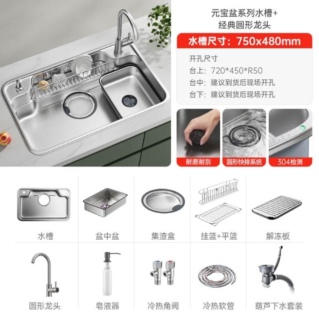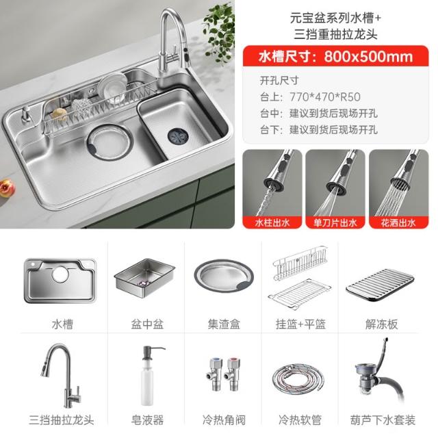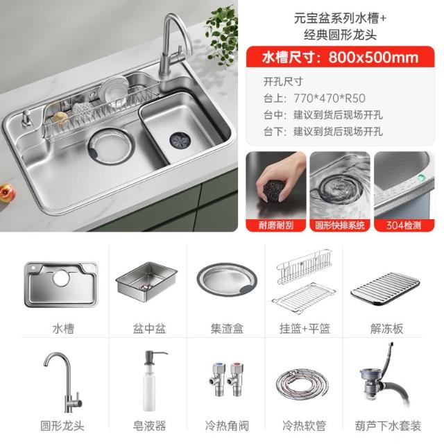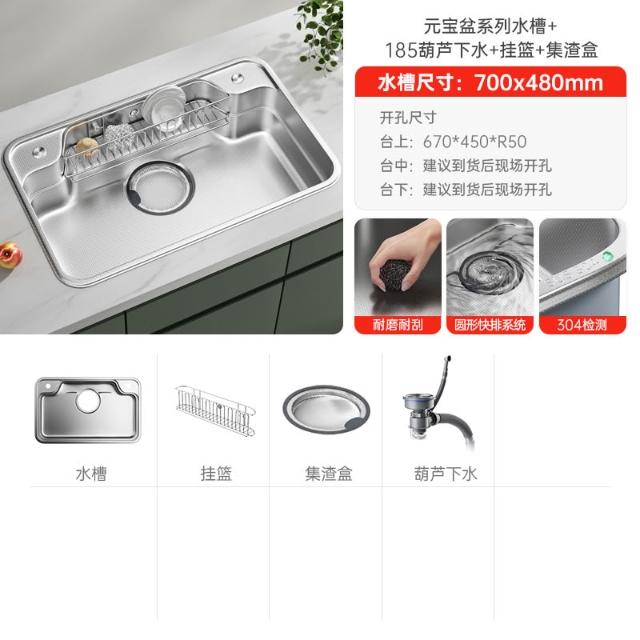 日式新款集渣廚房水槽 304不銹鋼洗菜盆大口徑下水加深洗碗池單槽