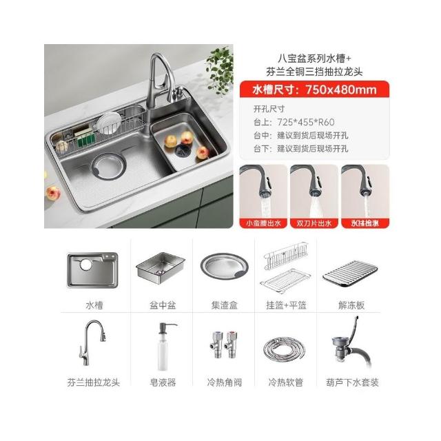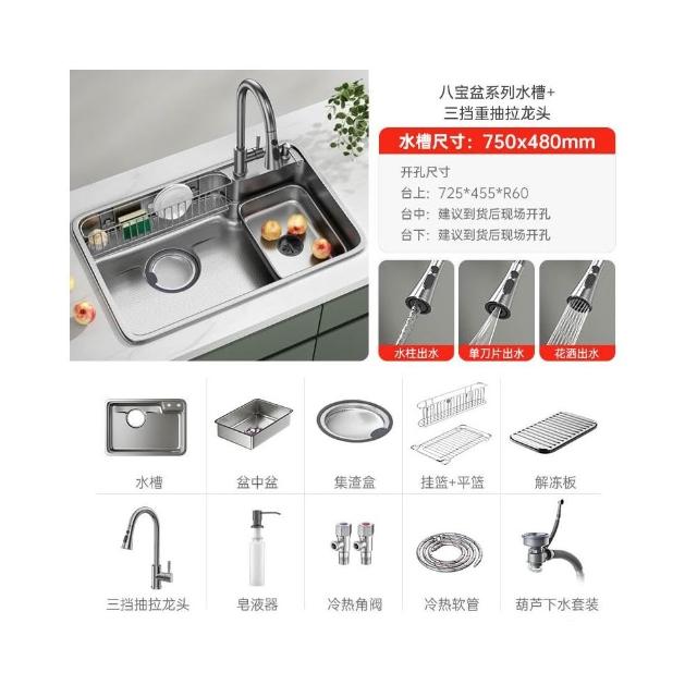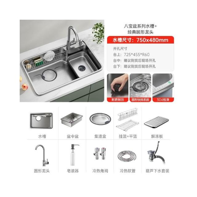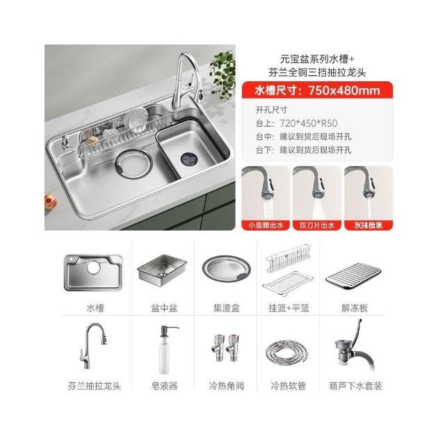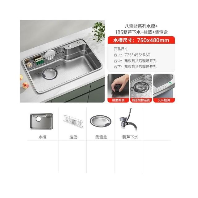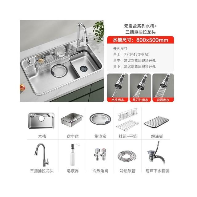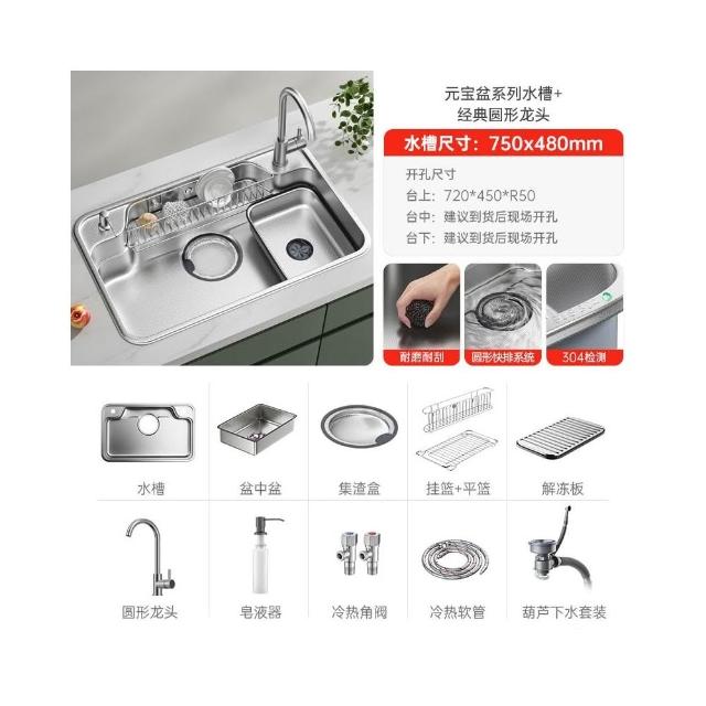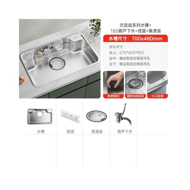 日式新款集渣廚房水槽 304不銹鋼洗菜盆大口徑下水加深洗碗池單槽