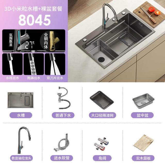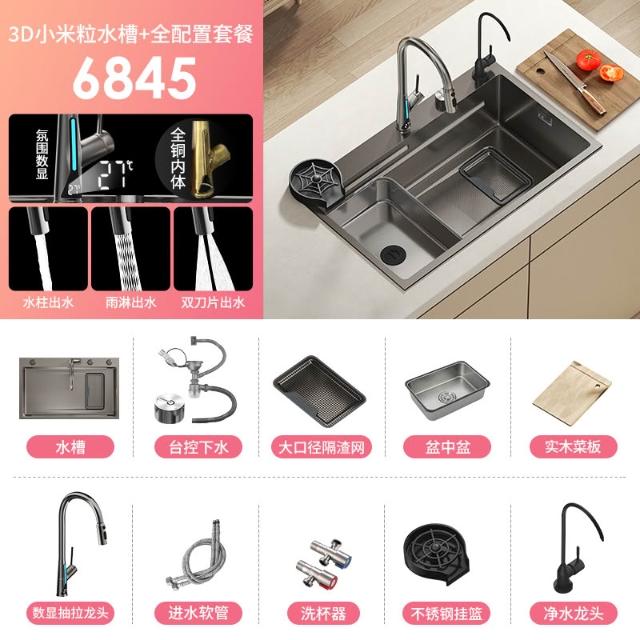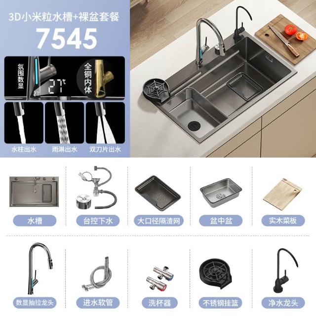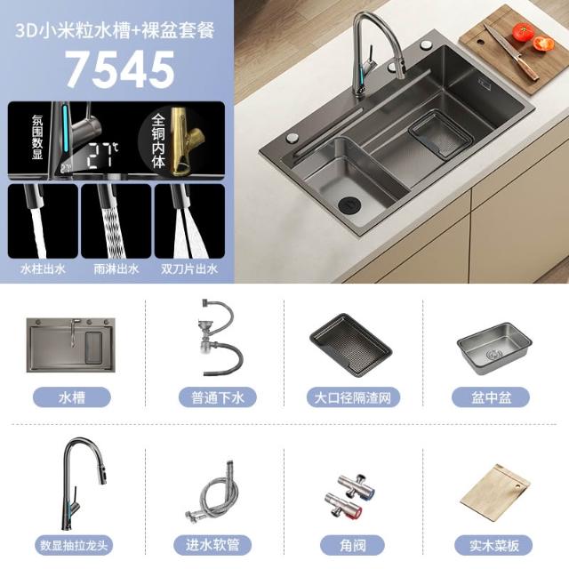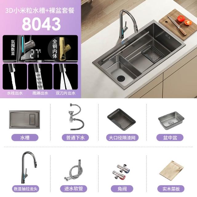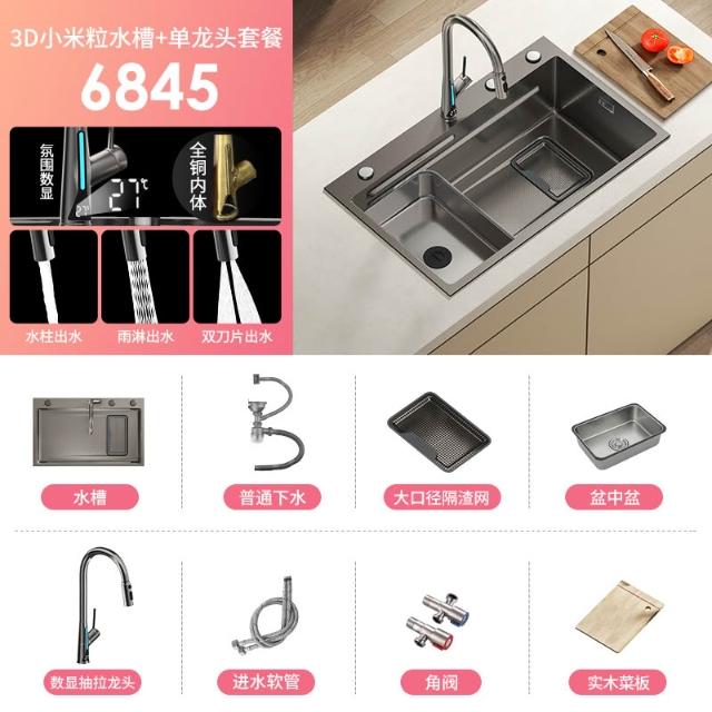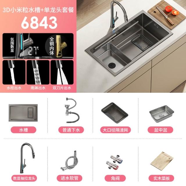 槍灰色米粒加厚304不銹鋼水槽大單槽廚房洗菜盆台下盆洗碗池水池