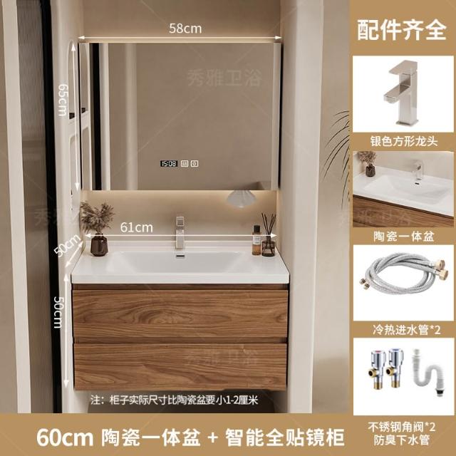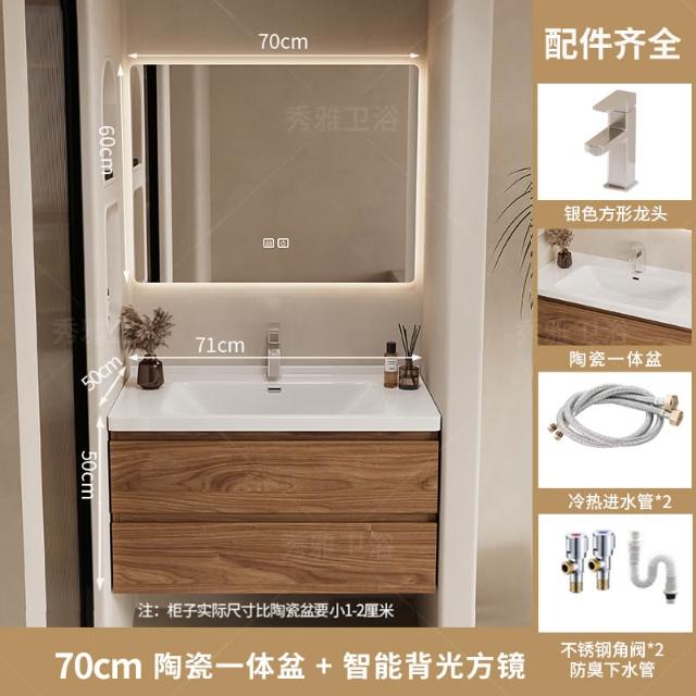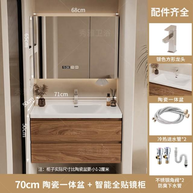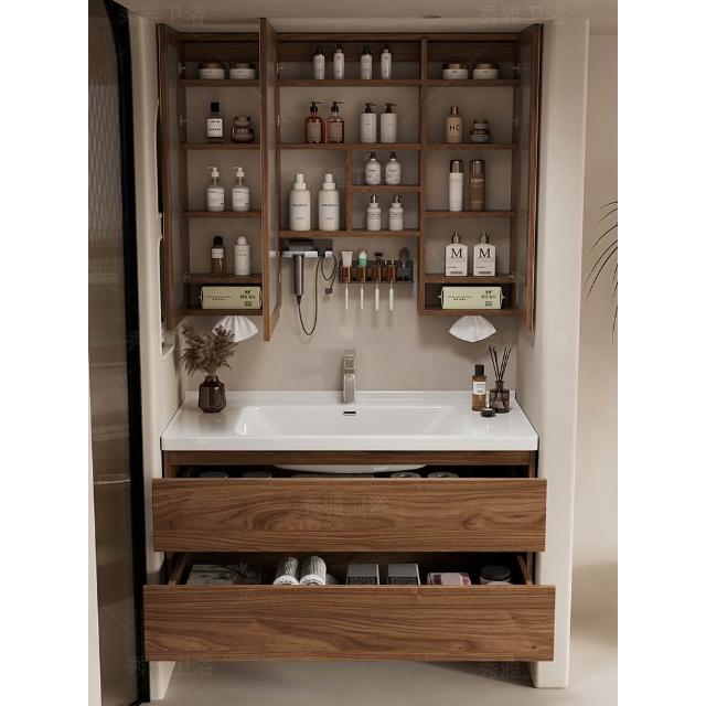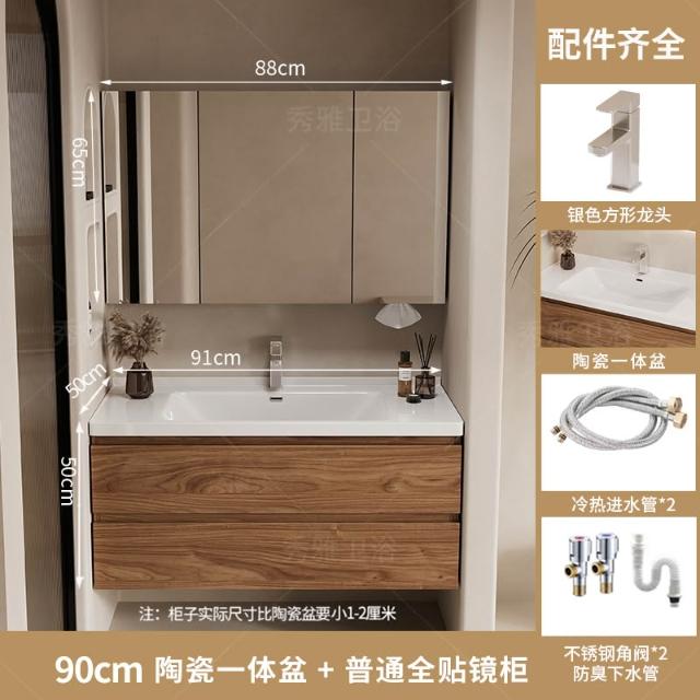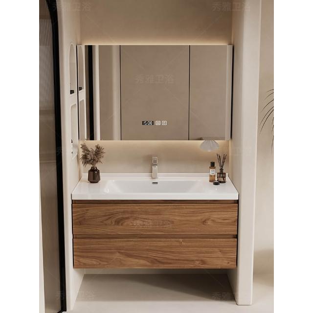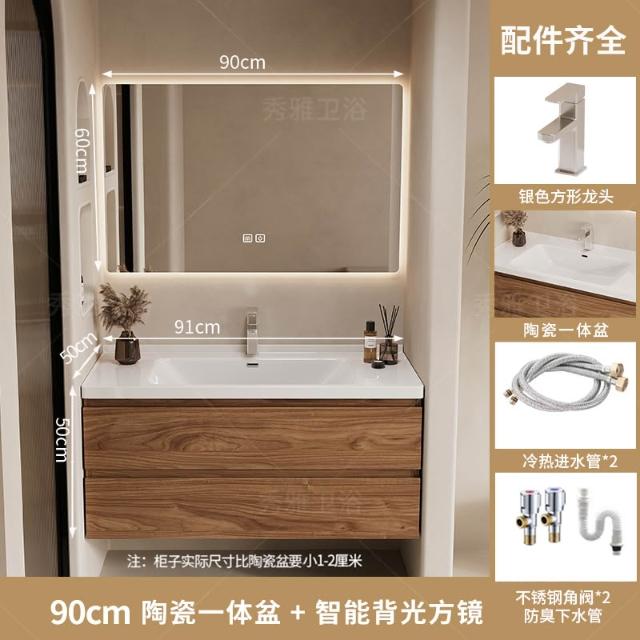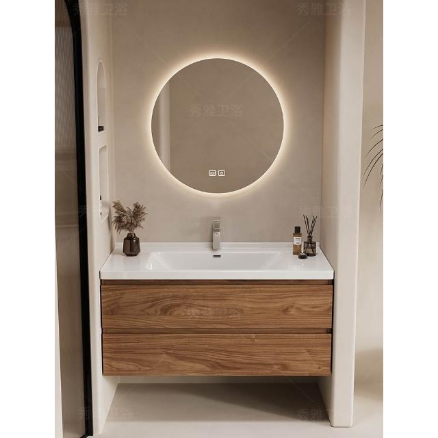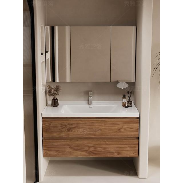黑胡桃木色浴室櫃衛生間洗漱臺陶瓷一體洗臉盆洗手池洗臉盆櫃組合
