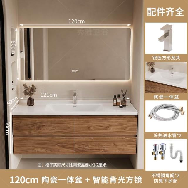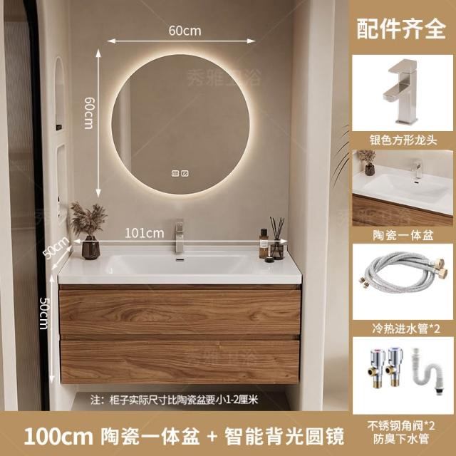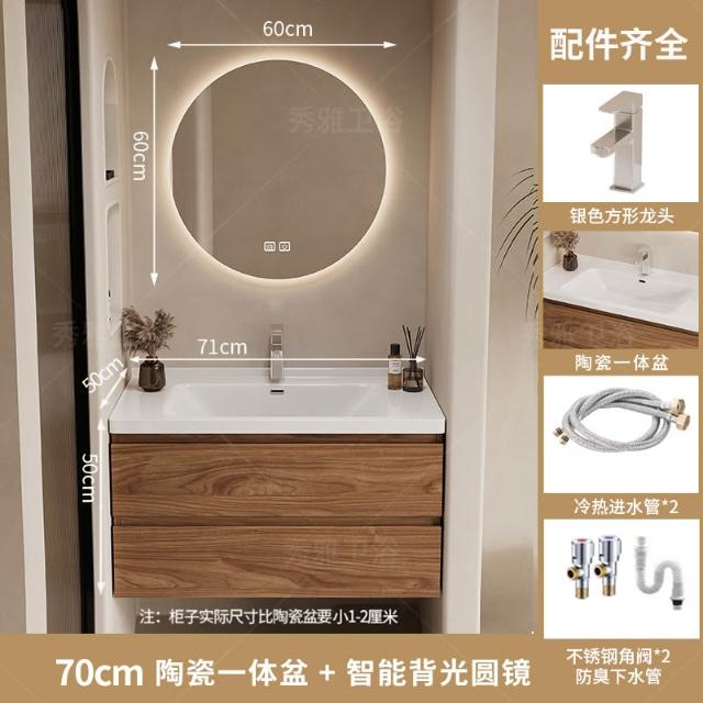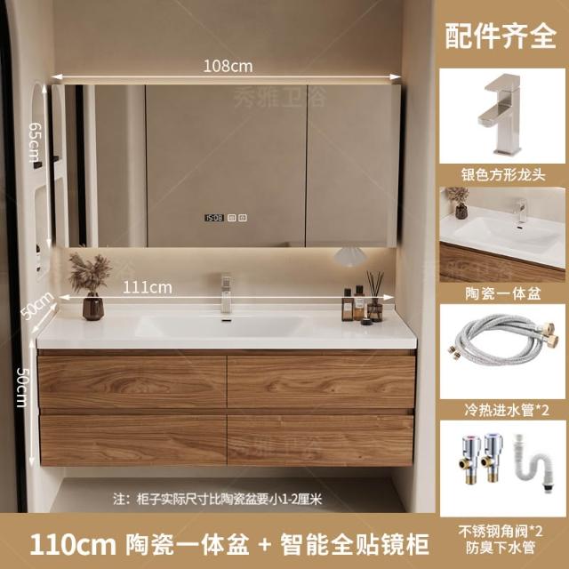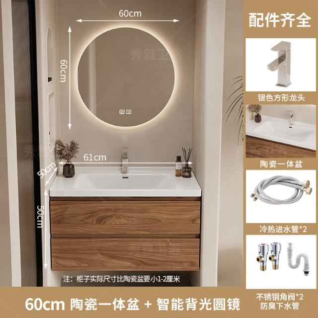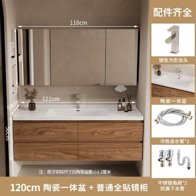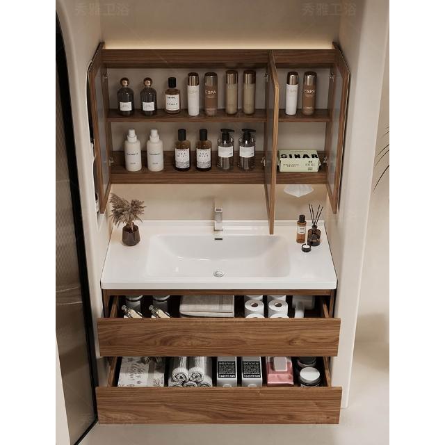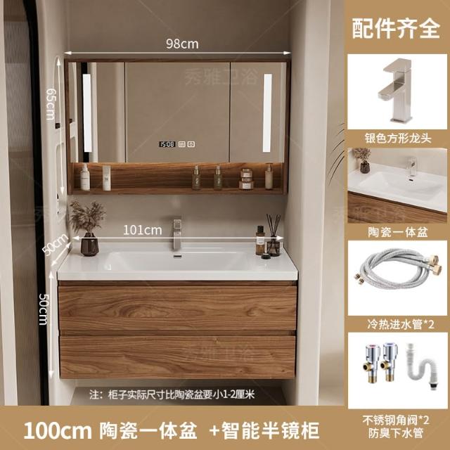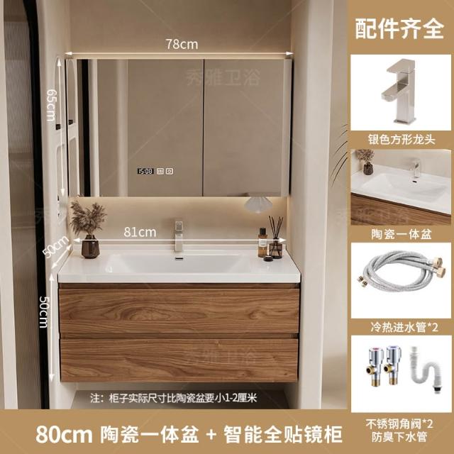 黑胡桃木色浴室櫃衛生間洗漱臺陶瓷一體洗臉盆洗手池洗臉盆櫃組合