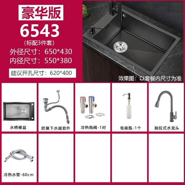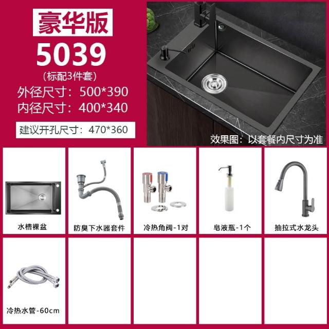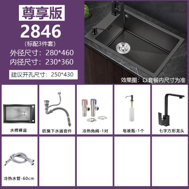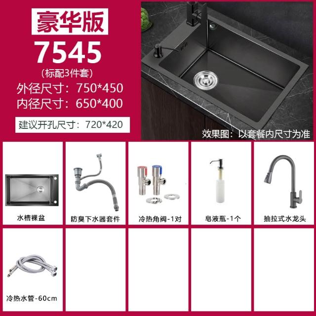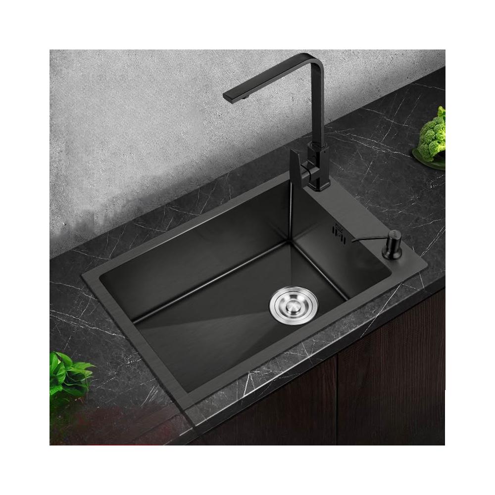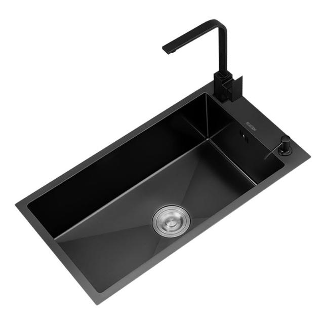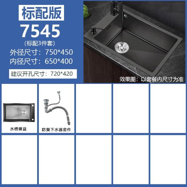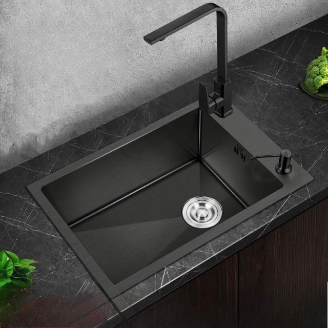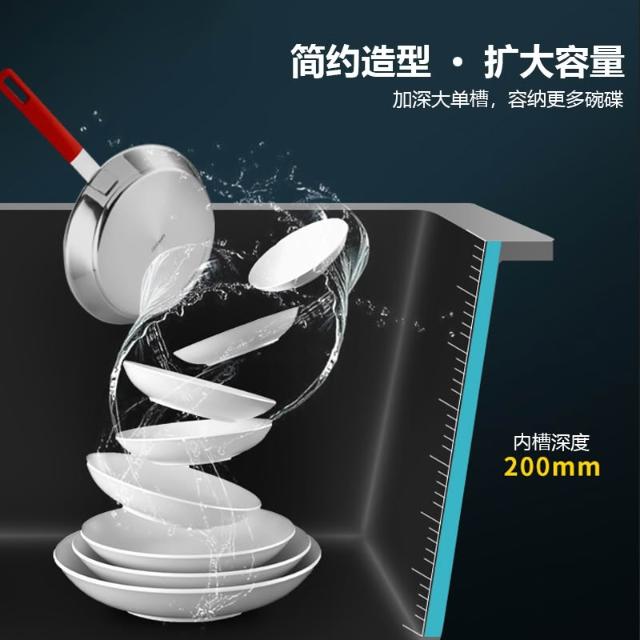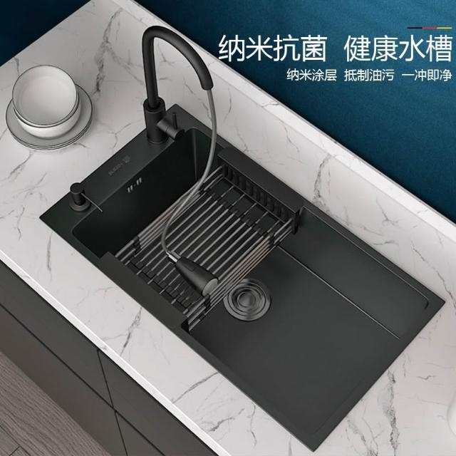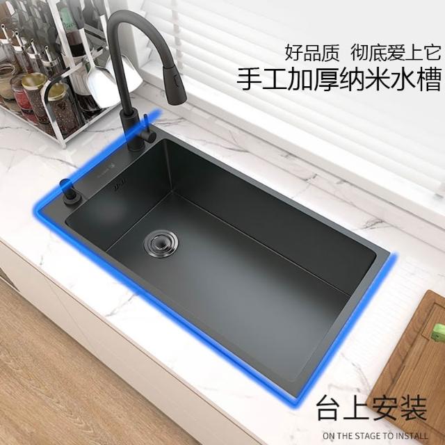 黑色納米廚房水槽橫向洗菜盆單槽手工304不銹鋼窄長型洗碗台下盆