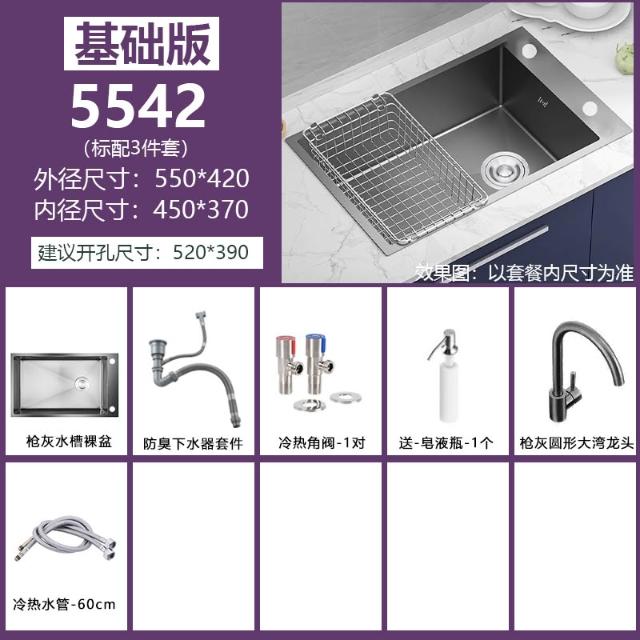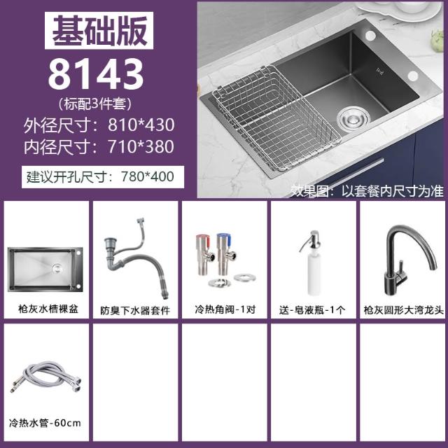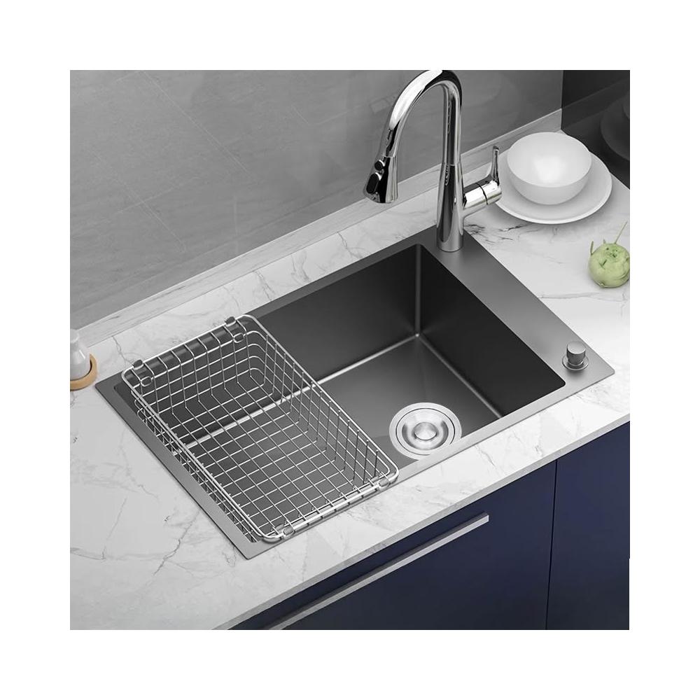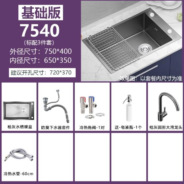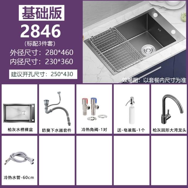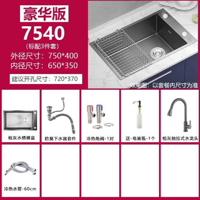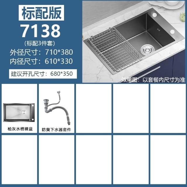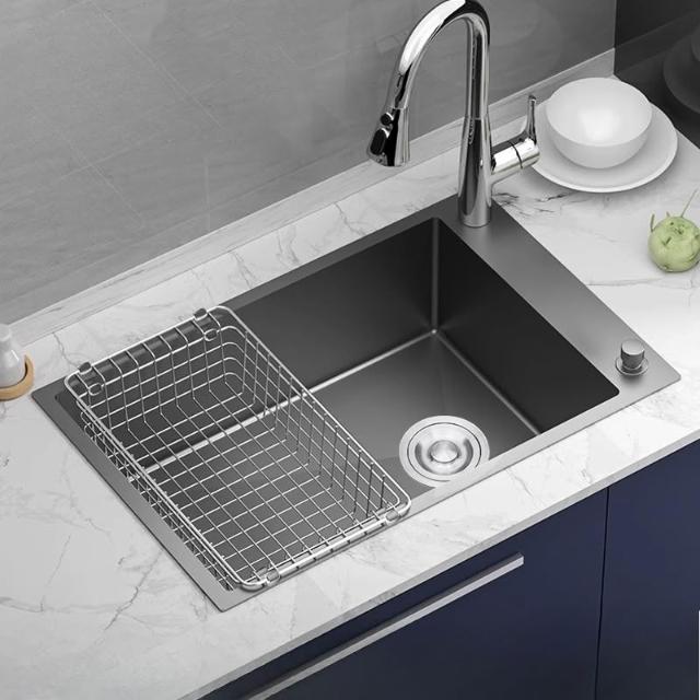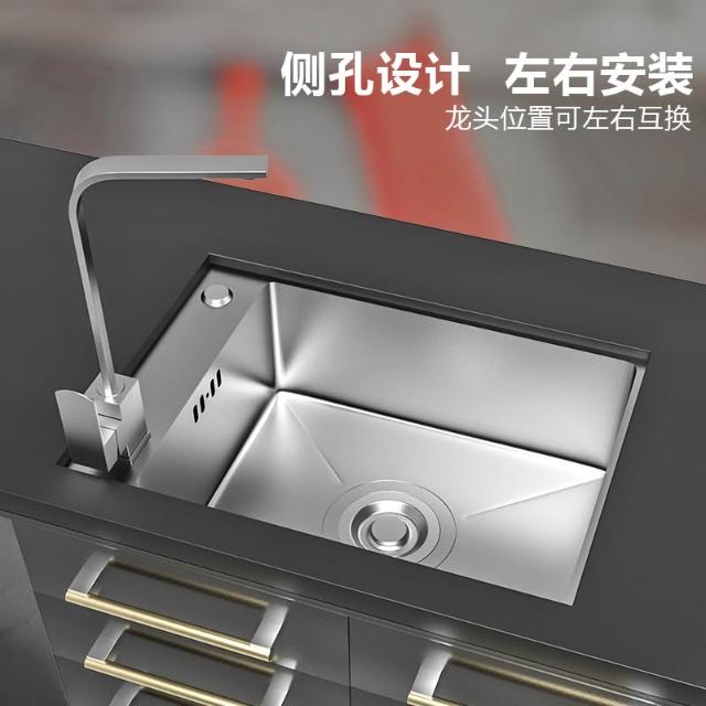 窄長型槍灰色廚房洗菜盆臺中台下盤橫向水槽304不銹鋼側孔大單槽