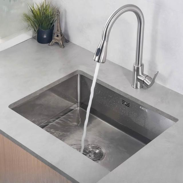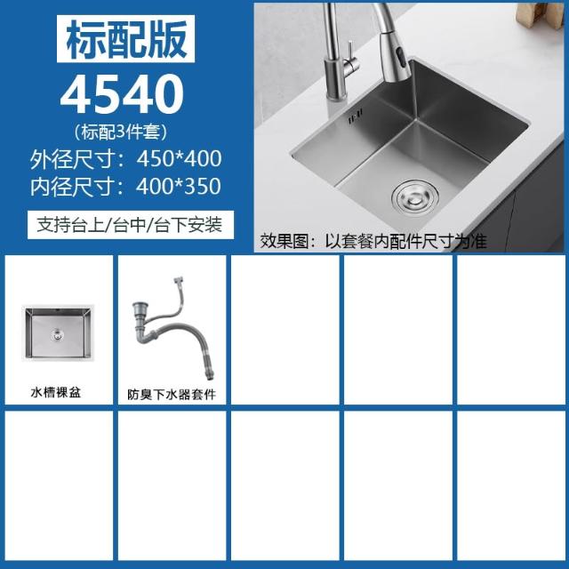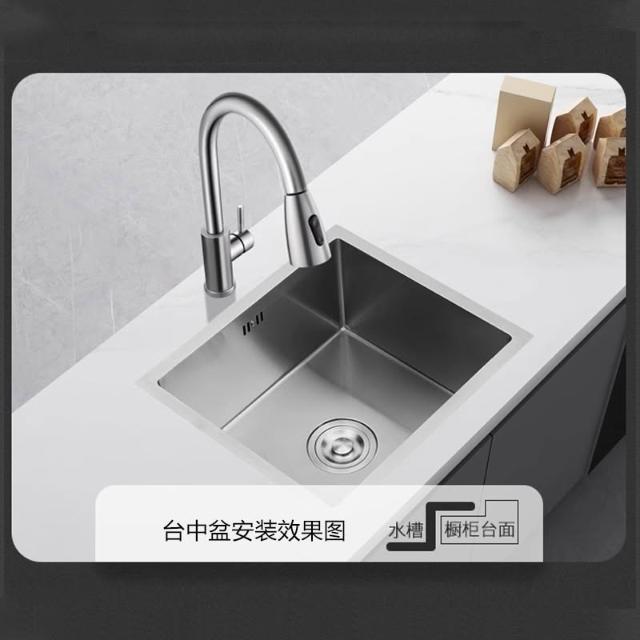 廚房台下盆專用水盆洗菜洗碗水槽304不銹鋼400寬窄邊嵌入式大單槽