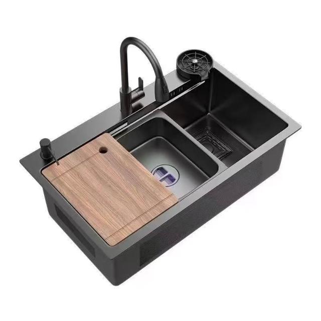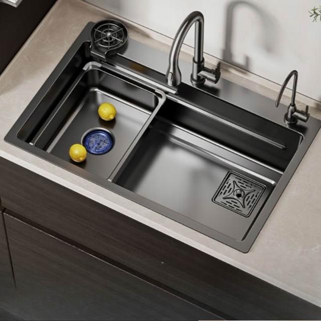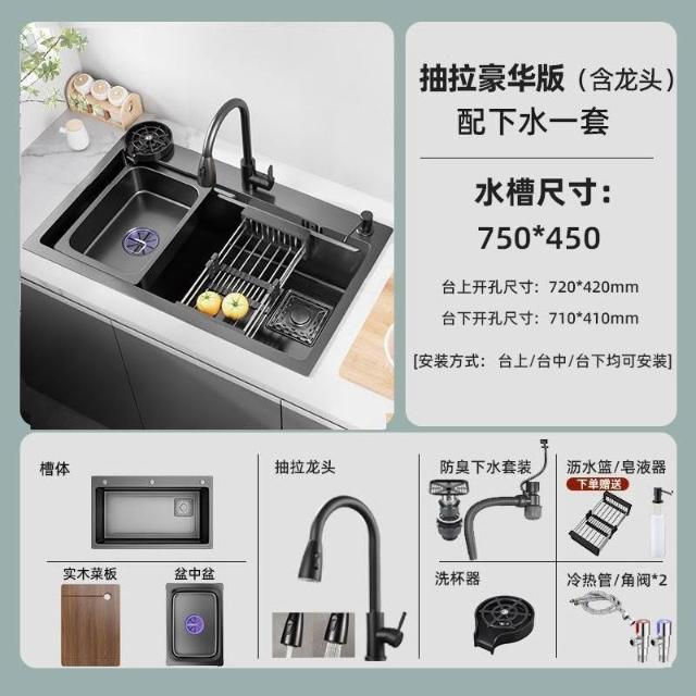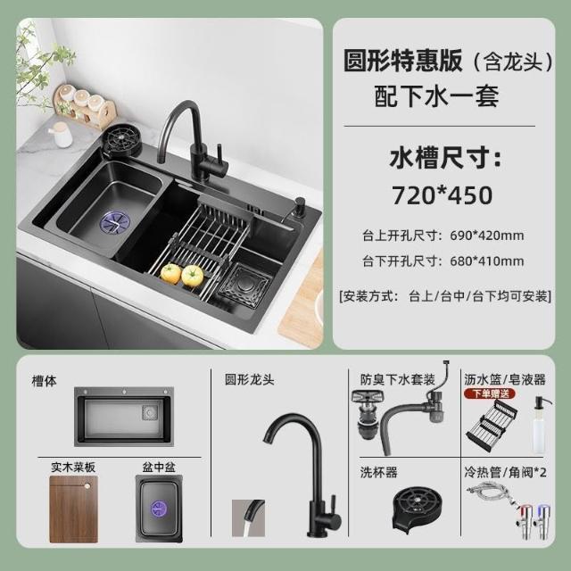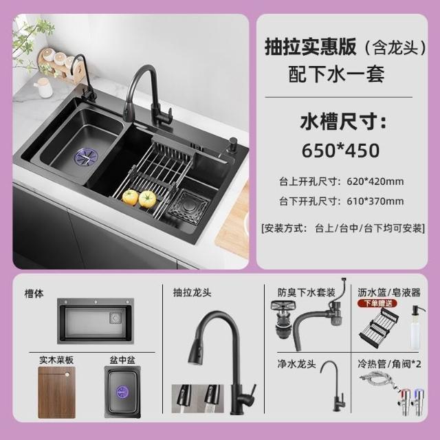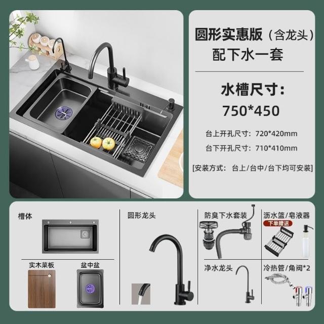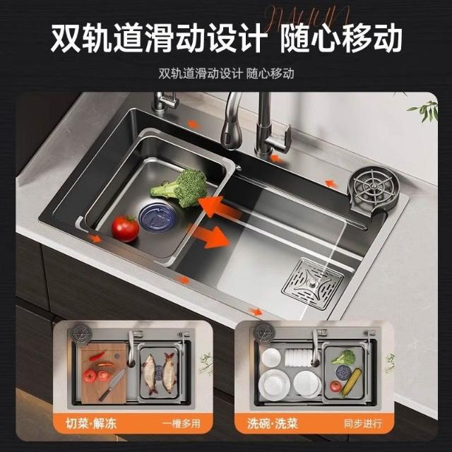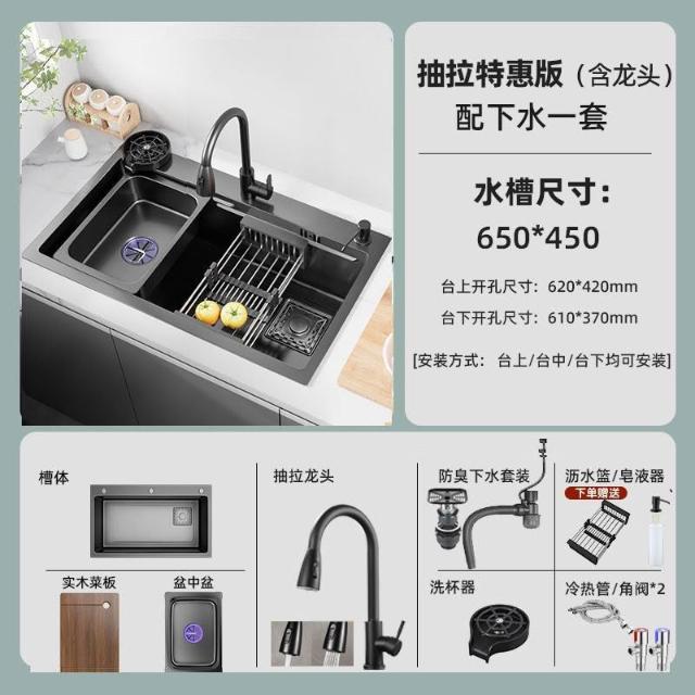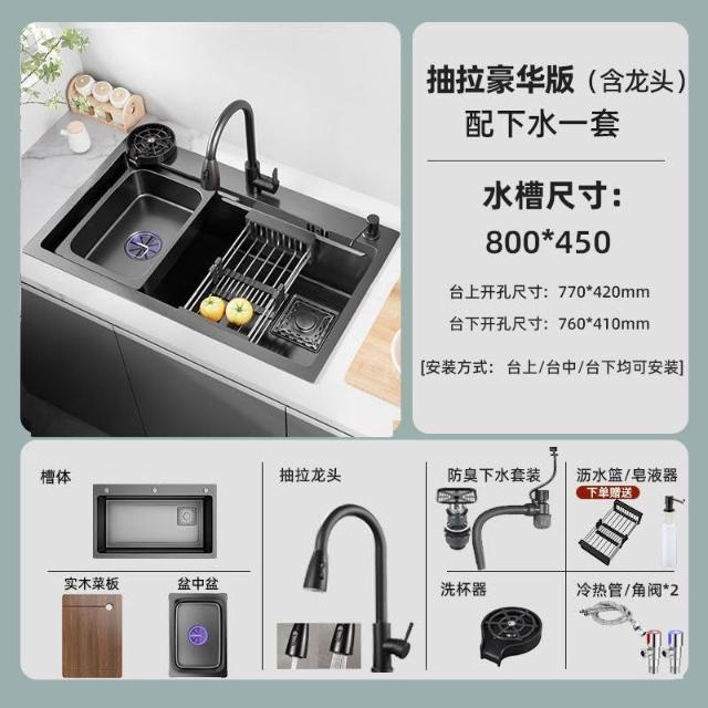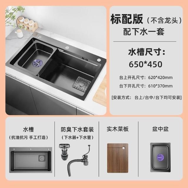 304不銹鋼廚房水槽大單槽家用納米洗菜盆全套洗碗槽加厚手工水池