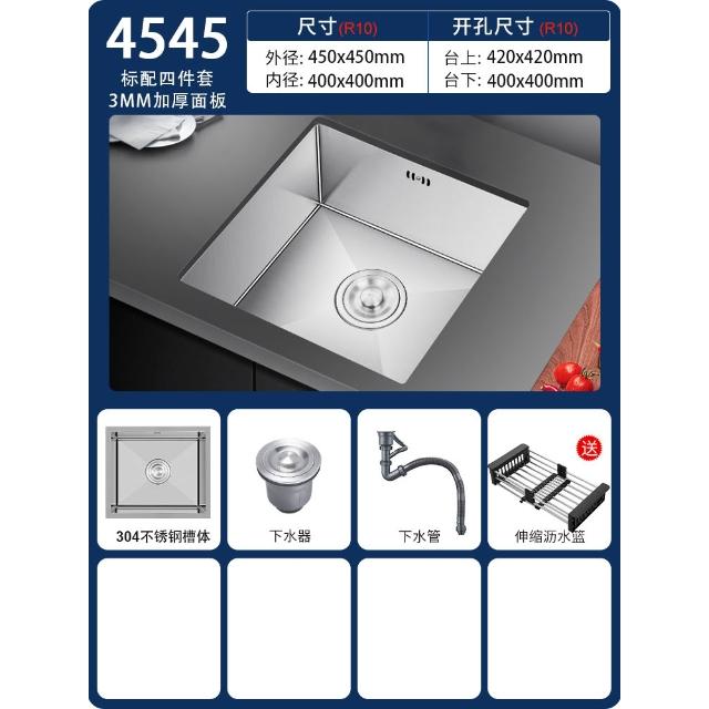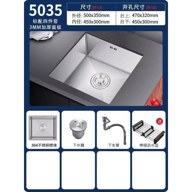 304不銹鋼水槽單槽小尺寸嵌入式臺中台下盆廚房手工洗菜盆大單槽