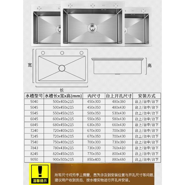 廚房304不銹鋼水槽大單槽洗菜盆家用加厚洗碗槽洗菜池水池台下盆