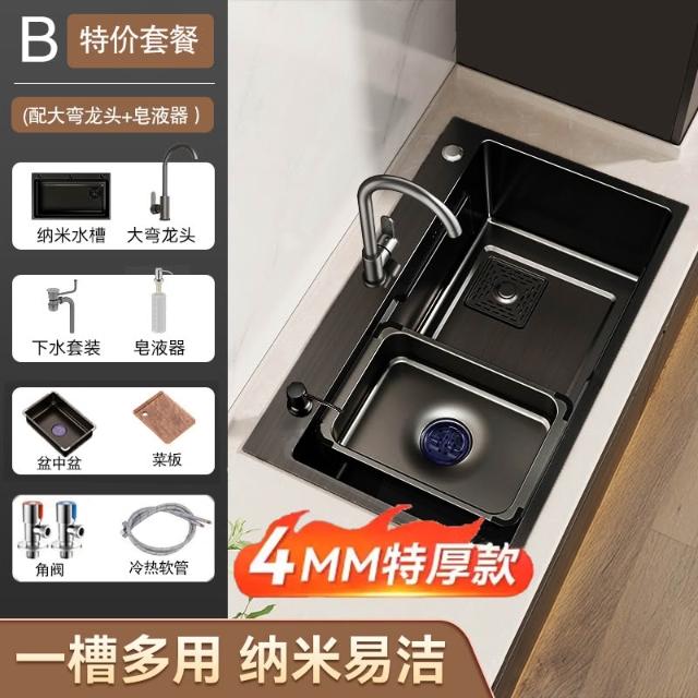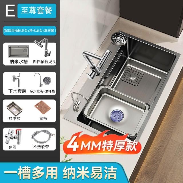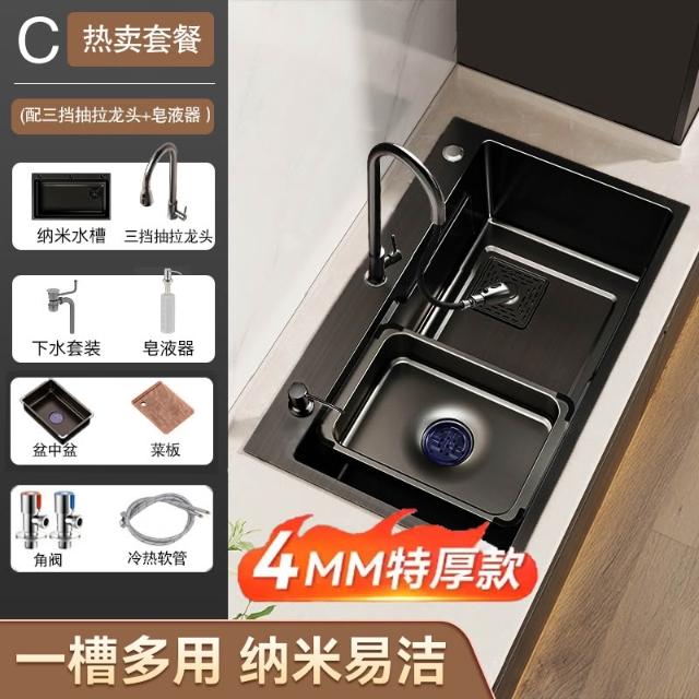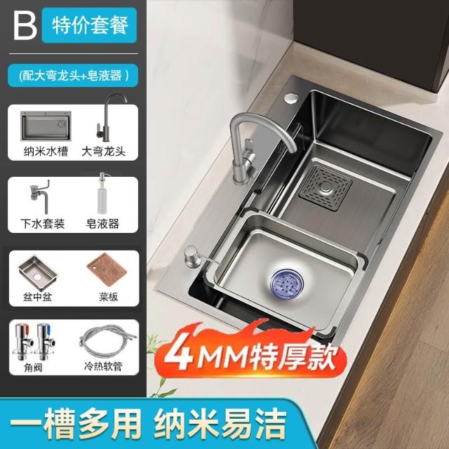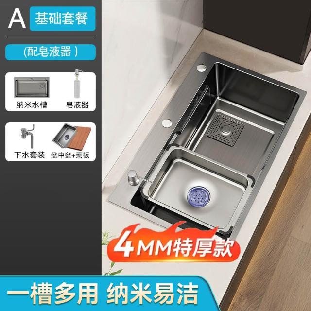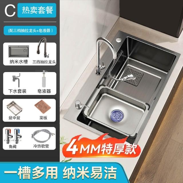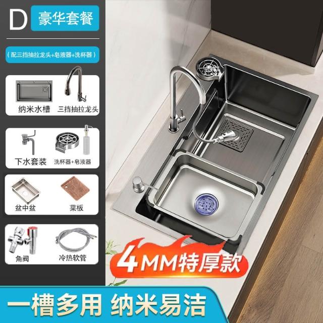 廚房洗菜盆大單槽加厚304不銹鋼水槽家用洗菜池手工台下盆