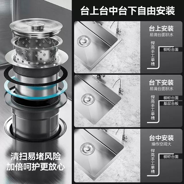 家用單槽臺中台下盆廚房洗菜盆304不銹鋼廚盆水槽窄邊水鬥洗碗池