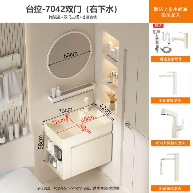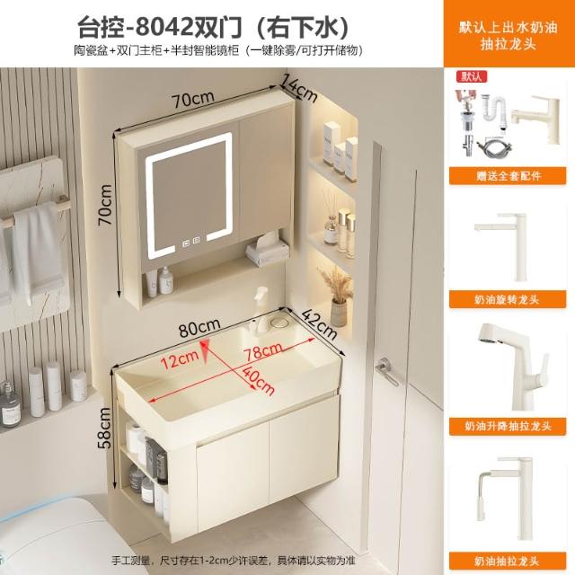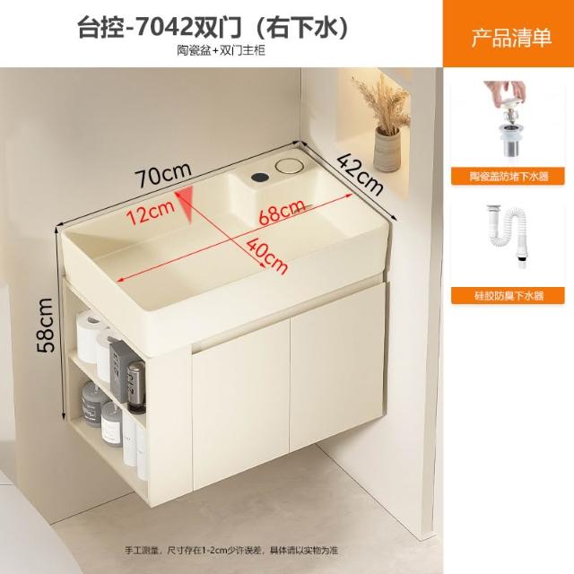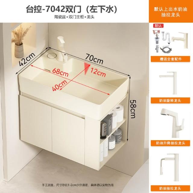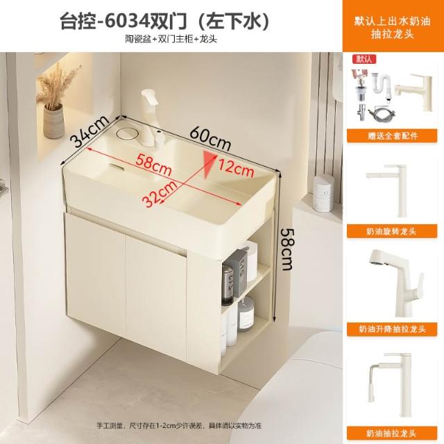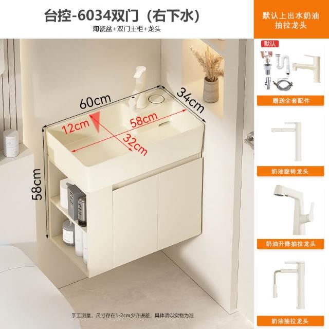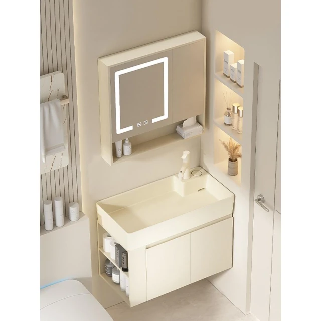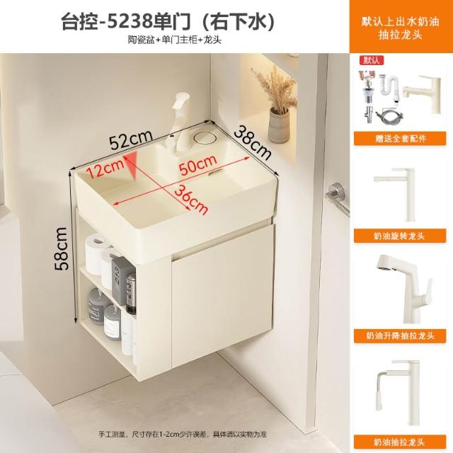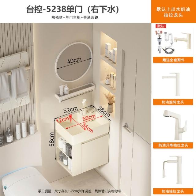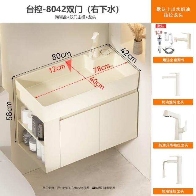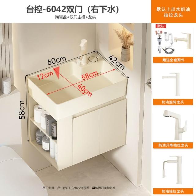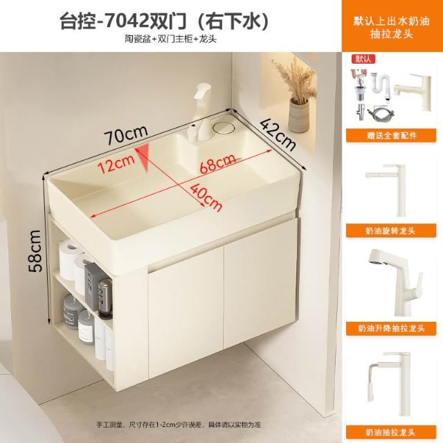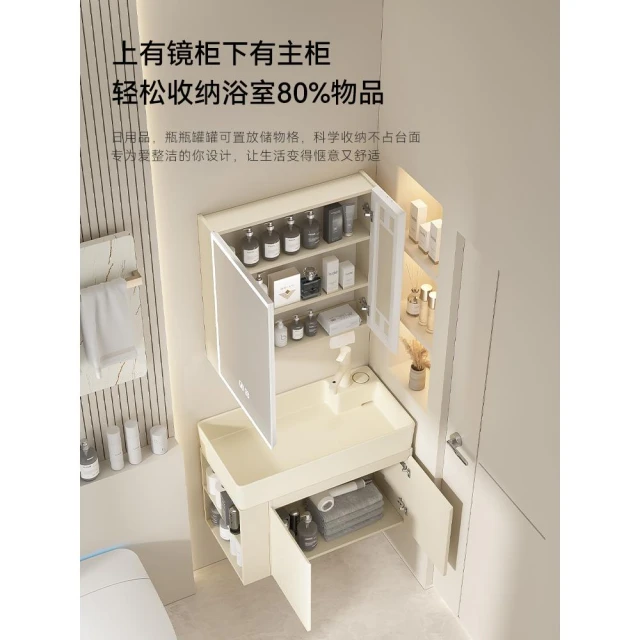 奶油色小戶型浴室櫃掛牆式陶瓷一體洗手盆櫃組合衛生間陽臺洗漱臺