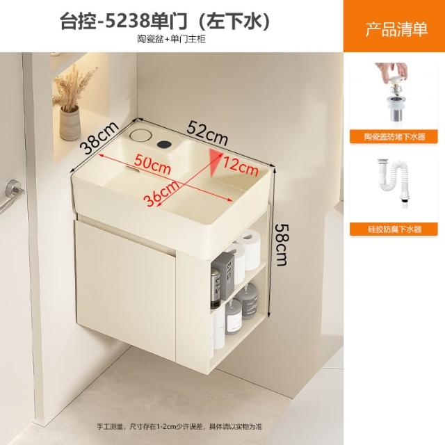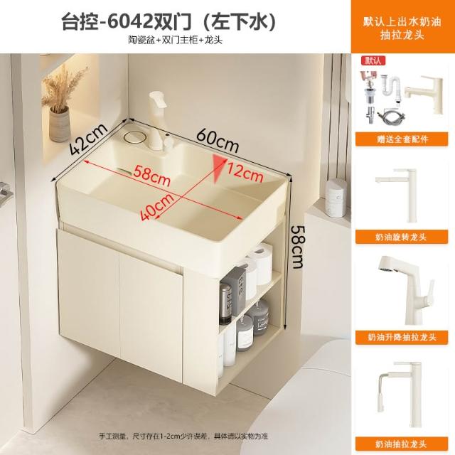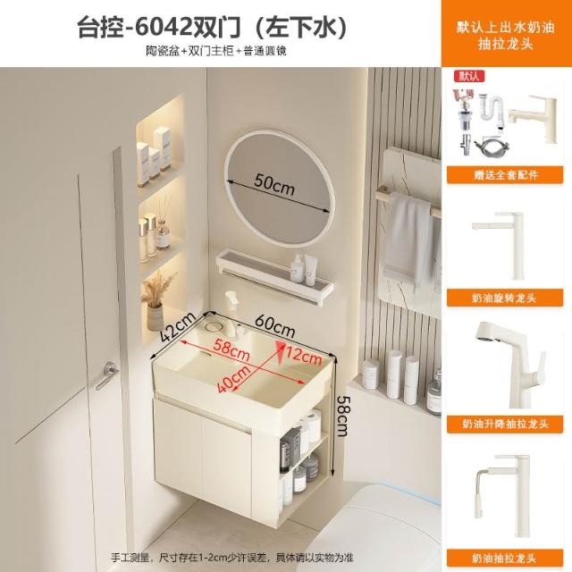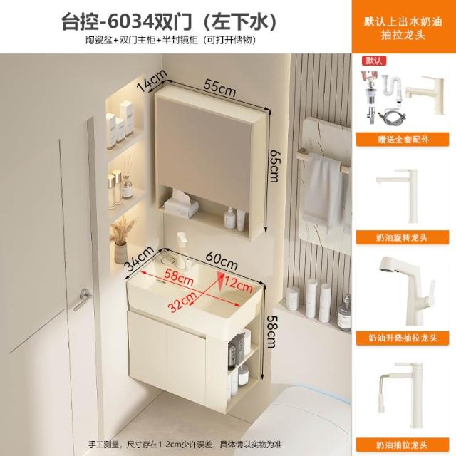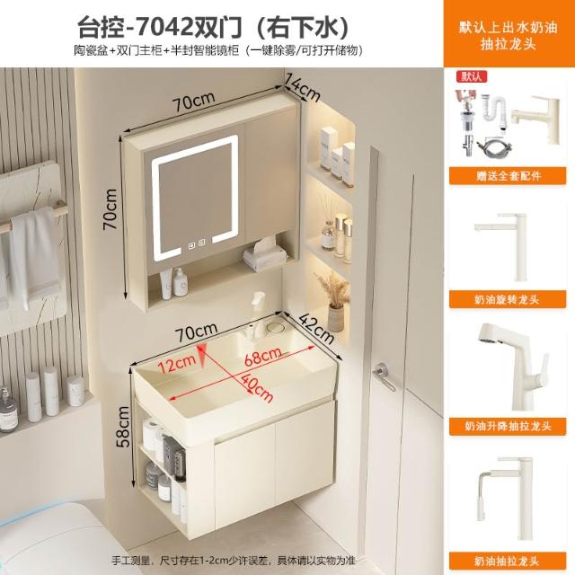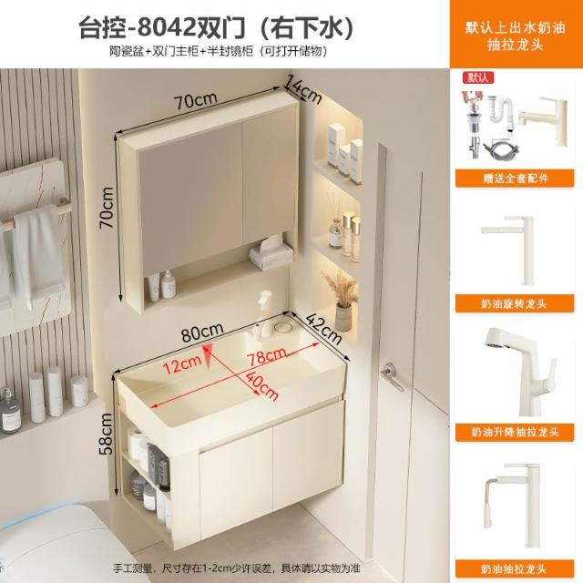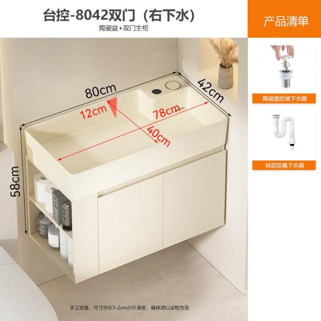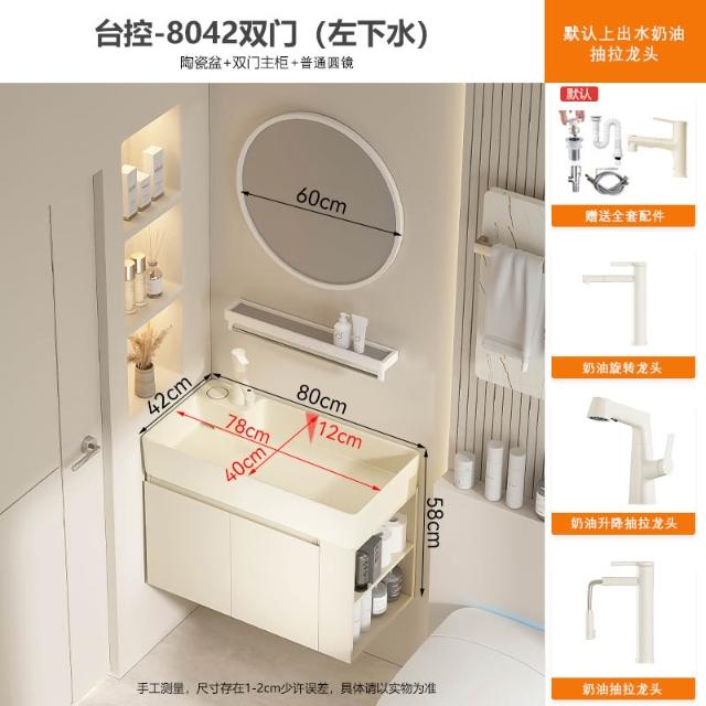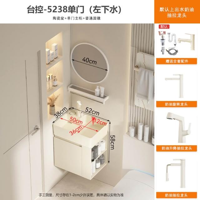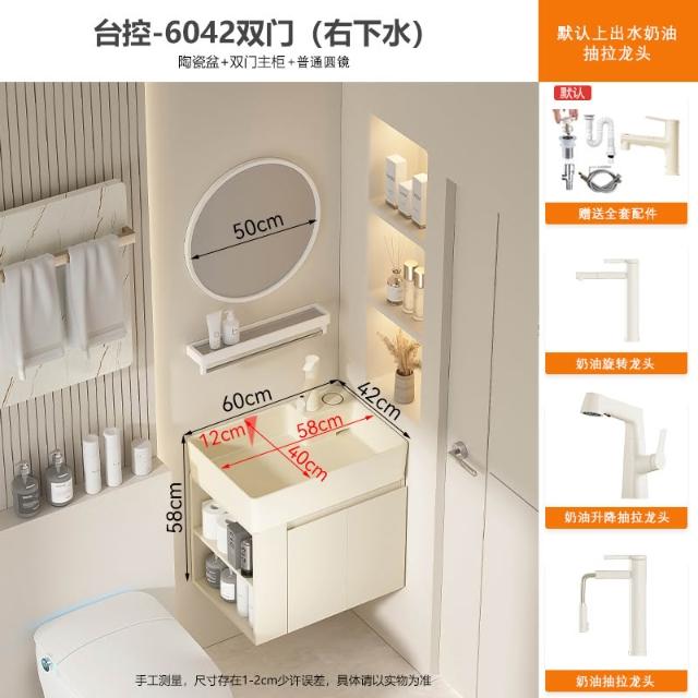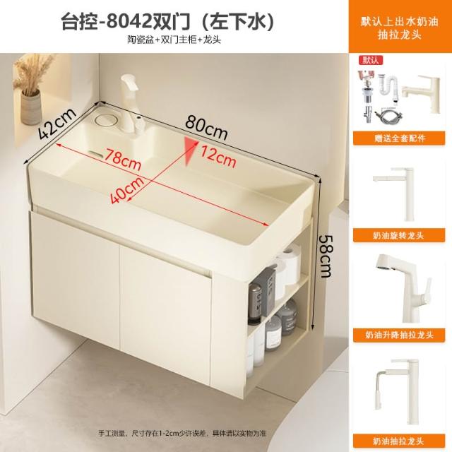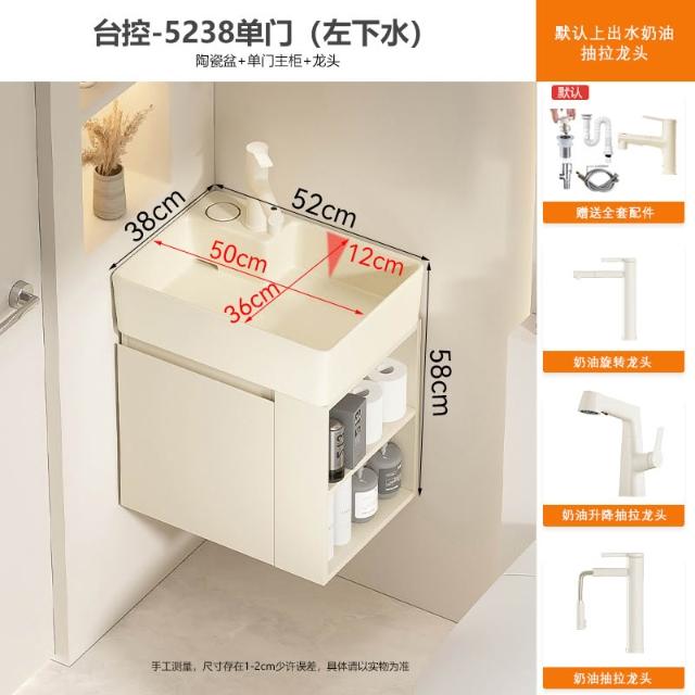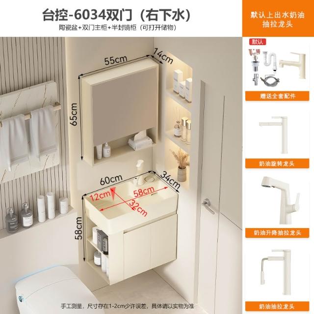奶油色小戶型浴室櫃掛牆式陶瓷一體洗手盆櫃組合衛生間陽臺洗漱臺