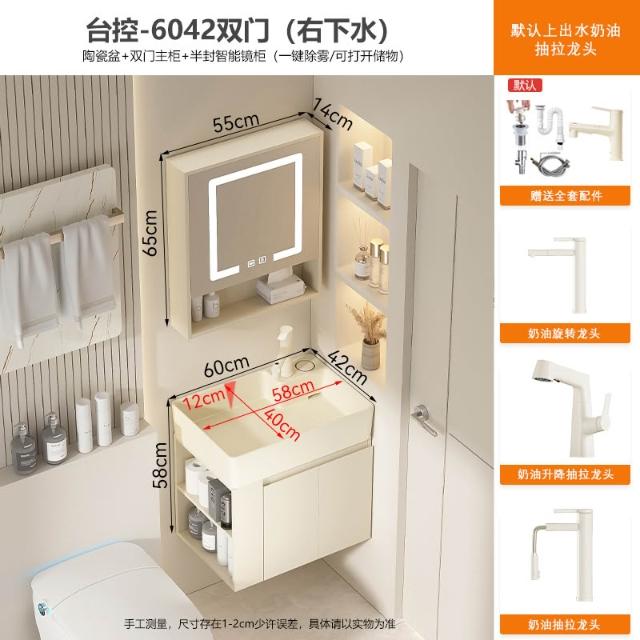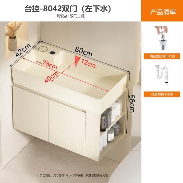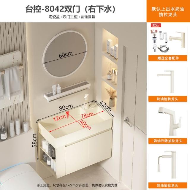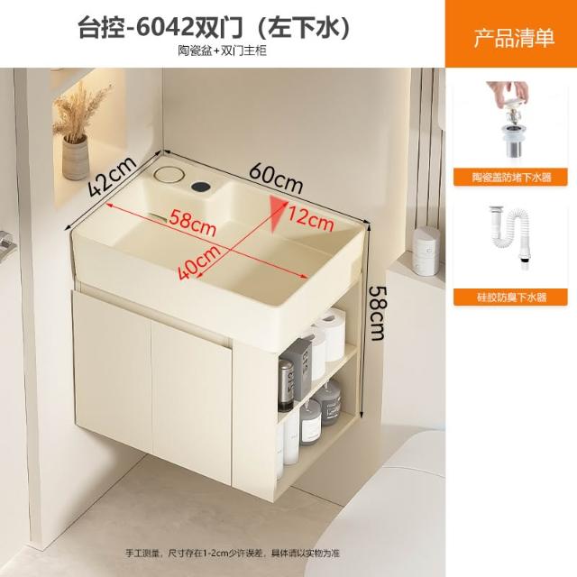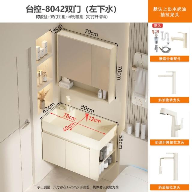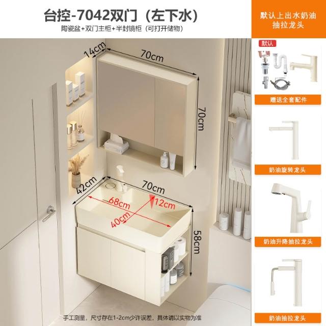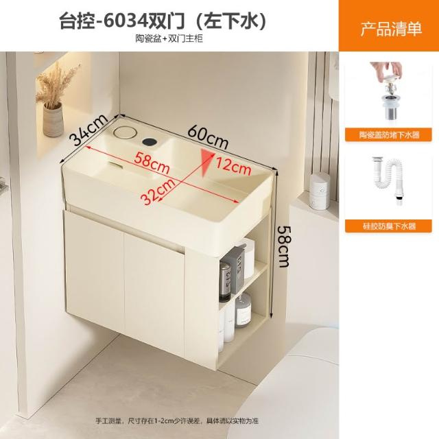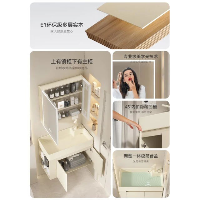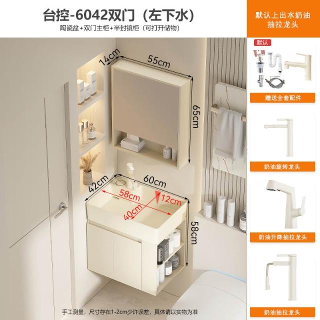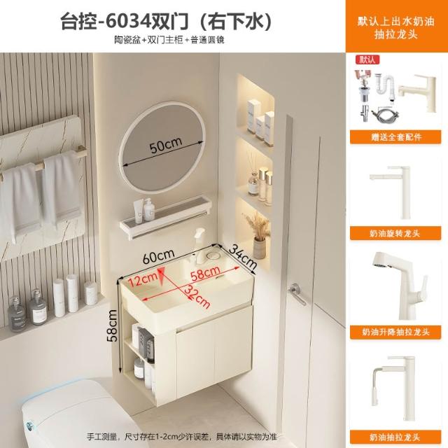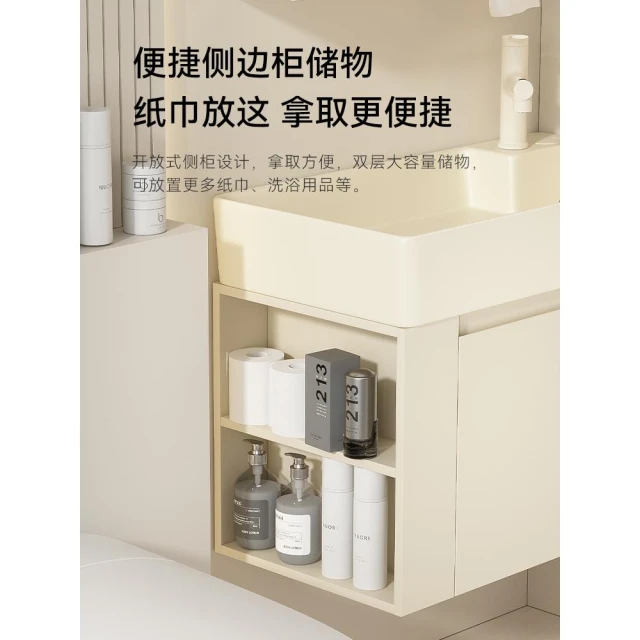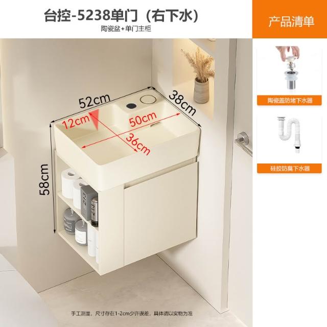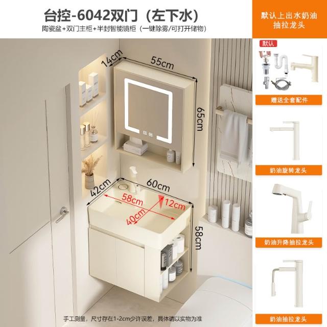 奶油色小戶型浴室櫃掛牆式陶瓷一體洗手盆櫃組合衛生間陽臺洗漱臺