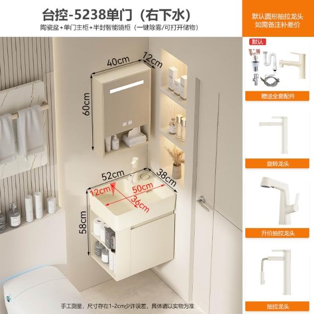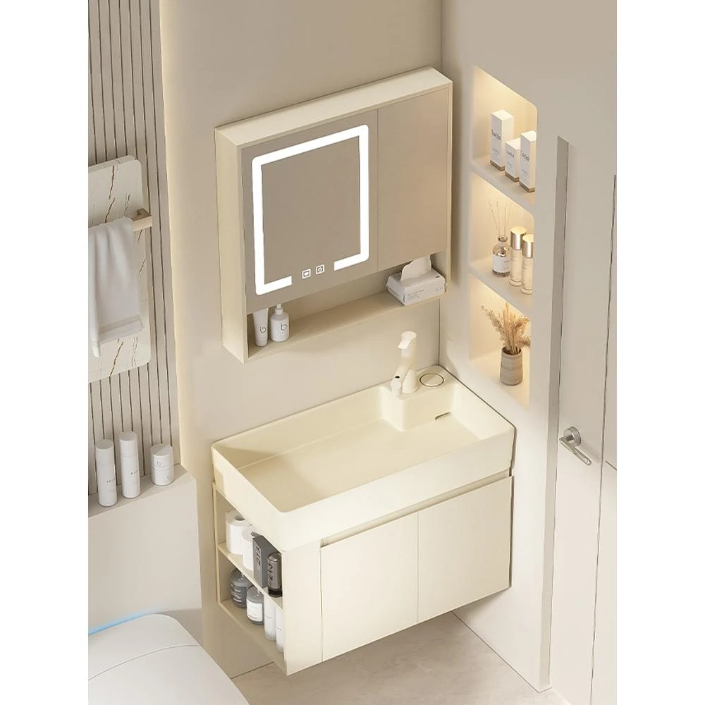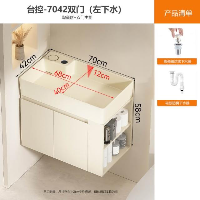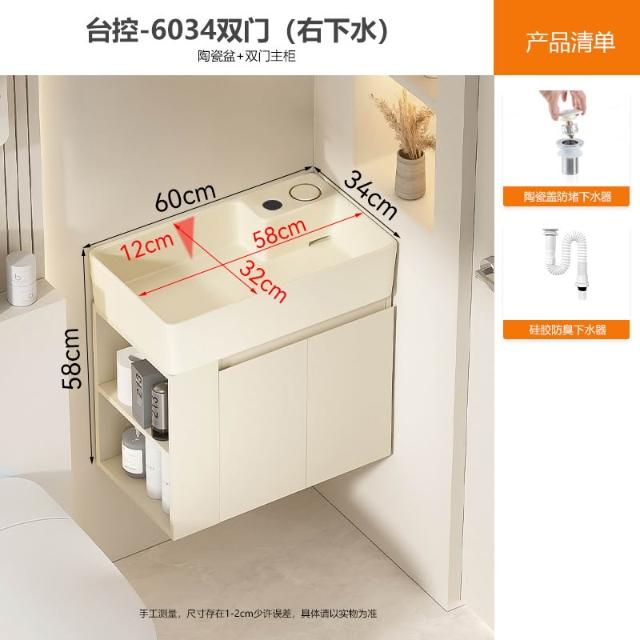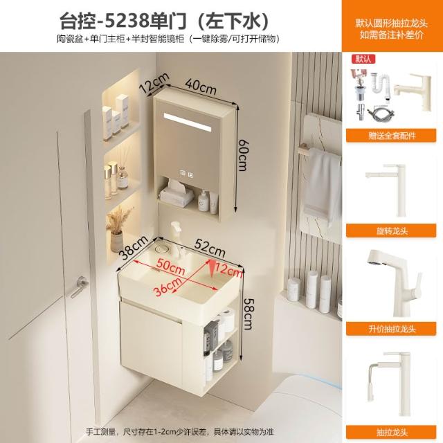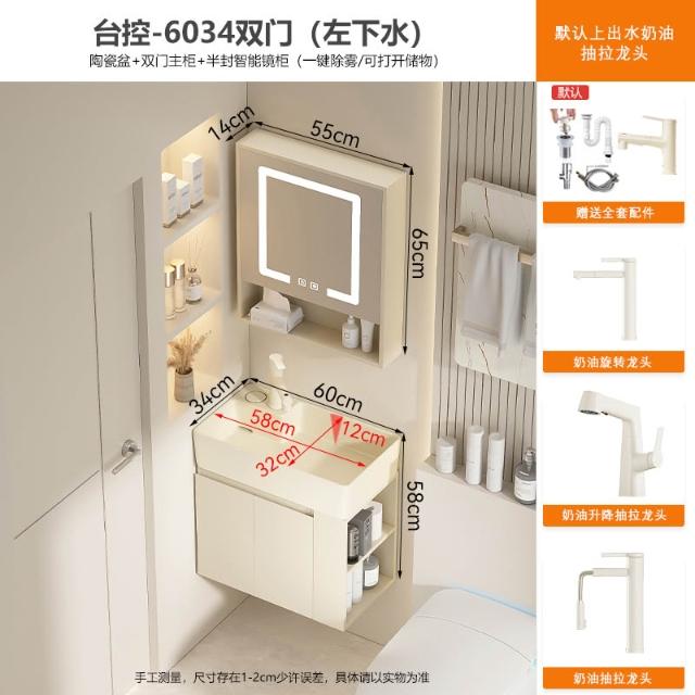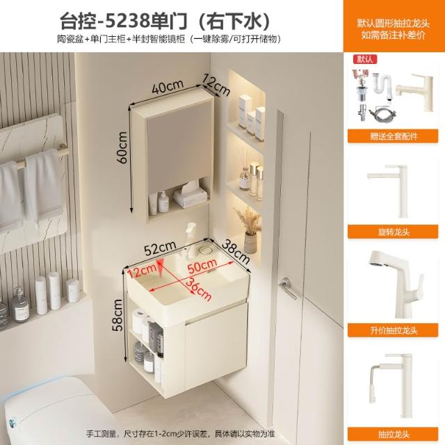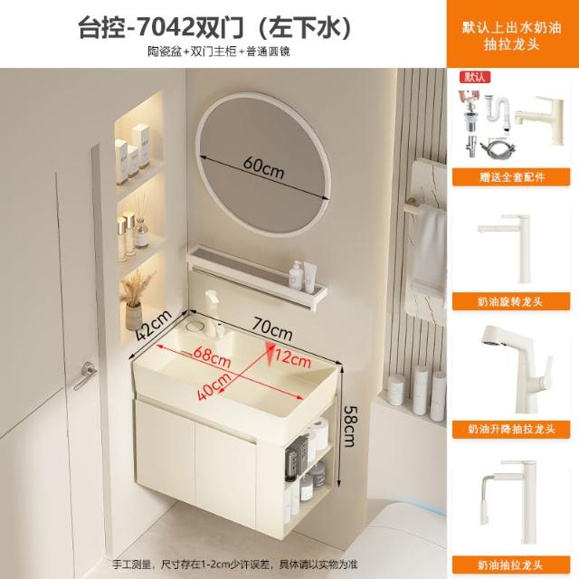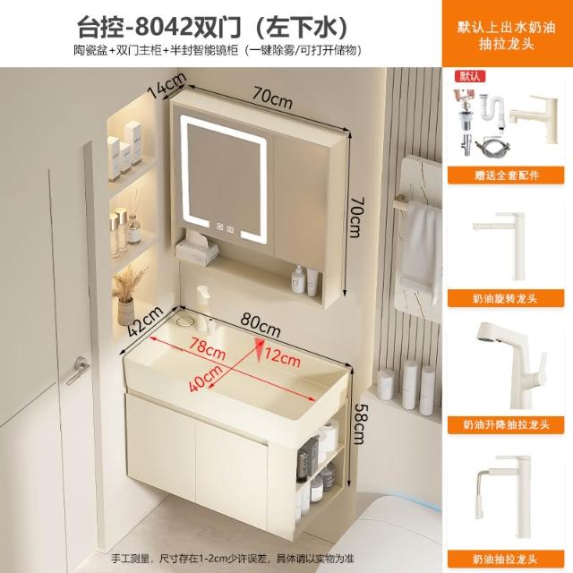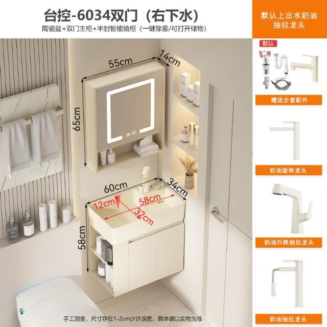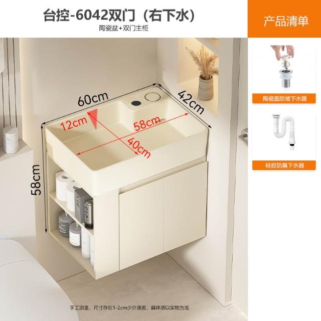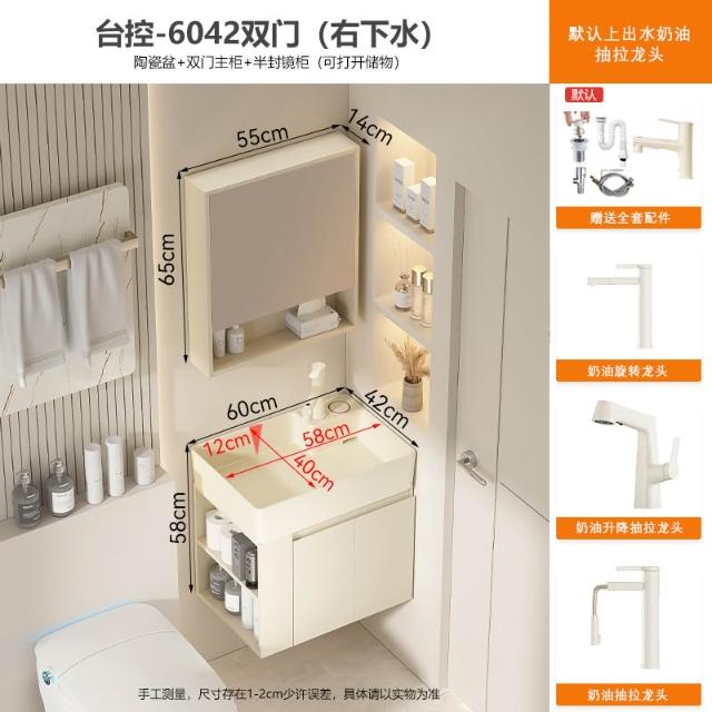 奶油色小戶型浴室櫃掛牆式陶瓷一體洗手盆櫃組合衛生間陽臺洗漱臺