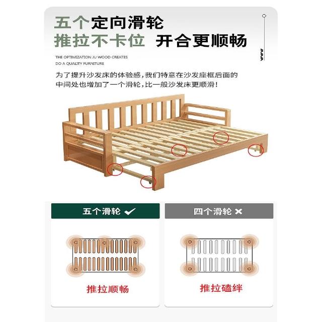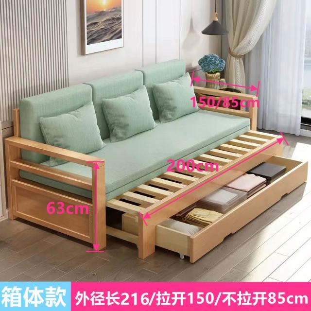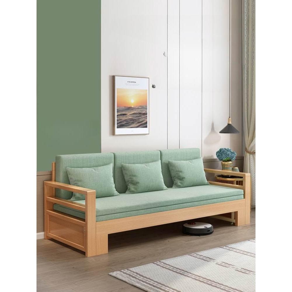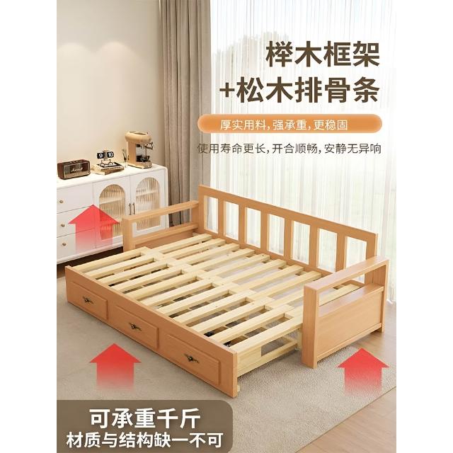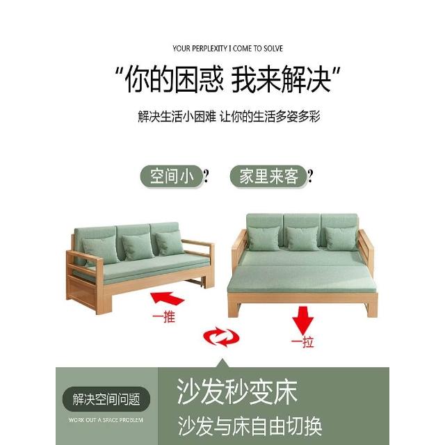 實木沙發床折疊兩用簡約現代客廳多功能儲物櫸木伸縮小戶型坐臥床