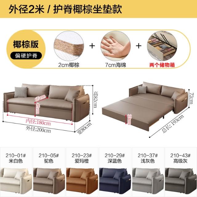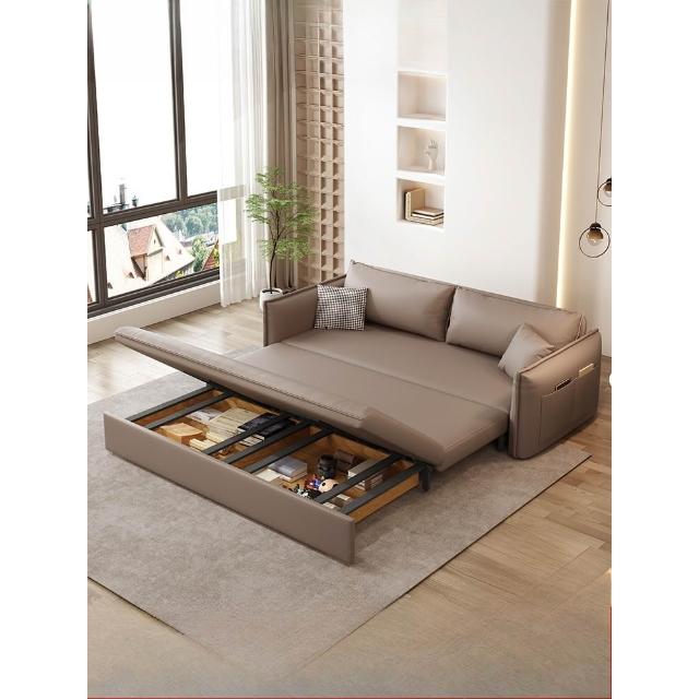 貓爪布侘寂奶油風沙發床折疊兩用多功能小戶型客廳雙人實木折疊床