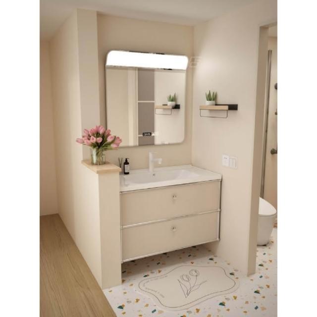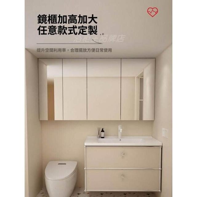 不銹鋼浴室櫃組合陶瓷一體盆衛生間洗漱臺奶油風洗手池法式洗臉盆