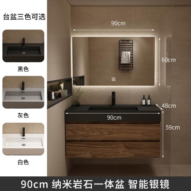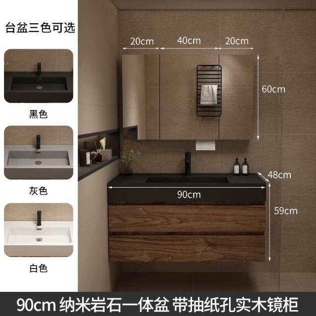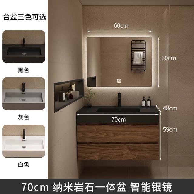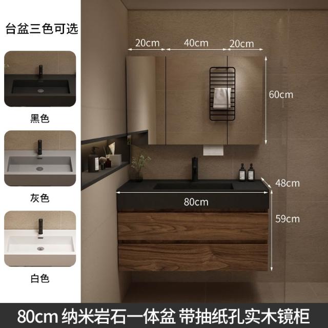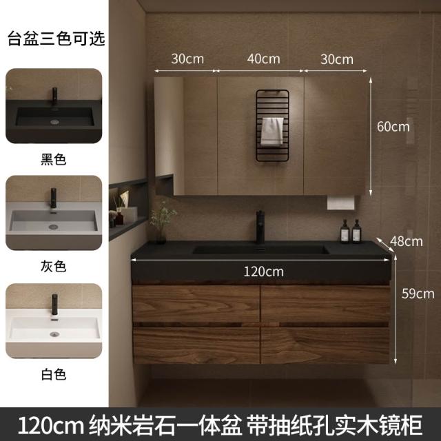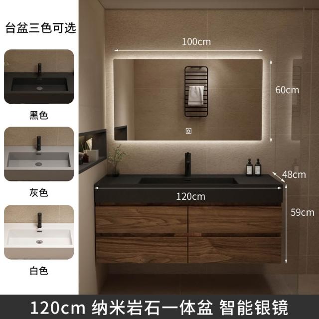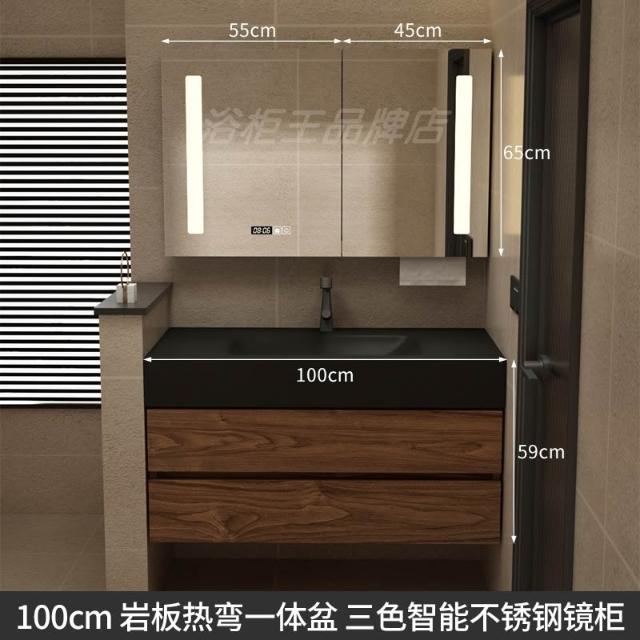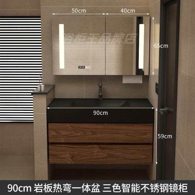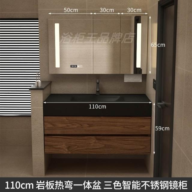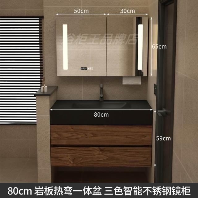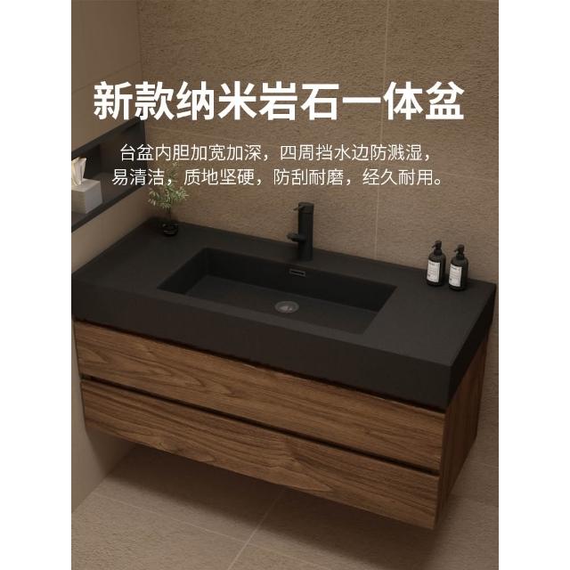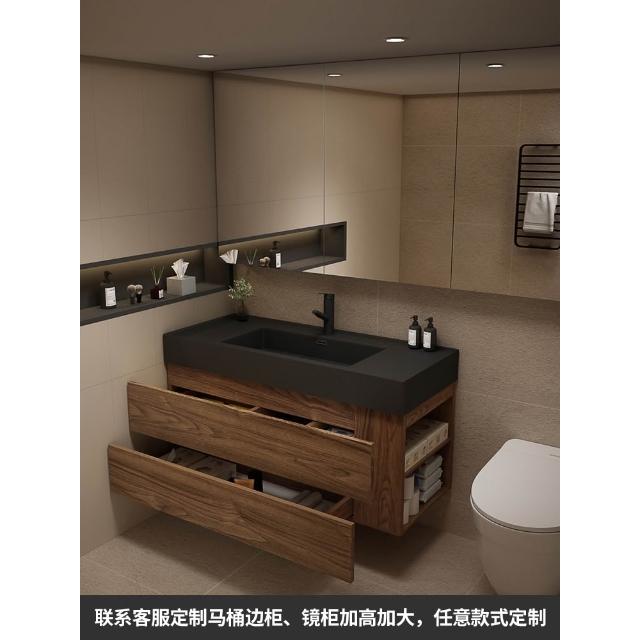 黑胡桃木色浴室櫃組合衛生間洗漱臺洗手池岩石一體洗臉盆潔具法式