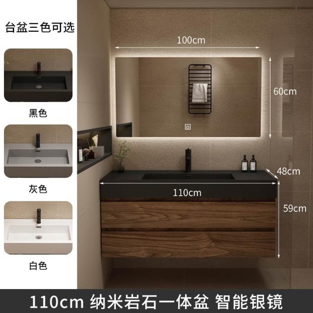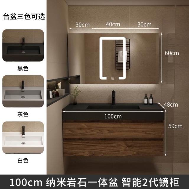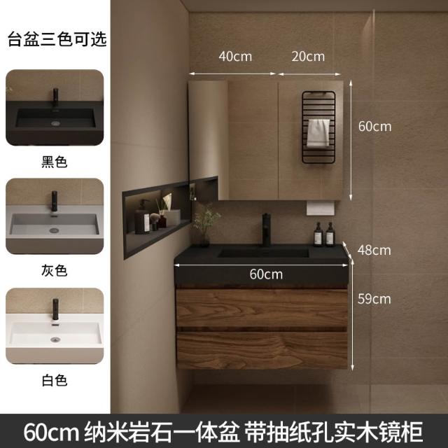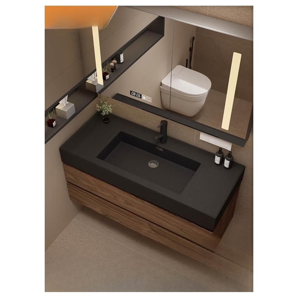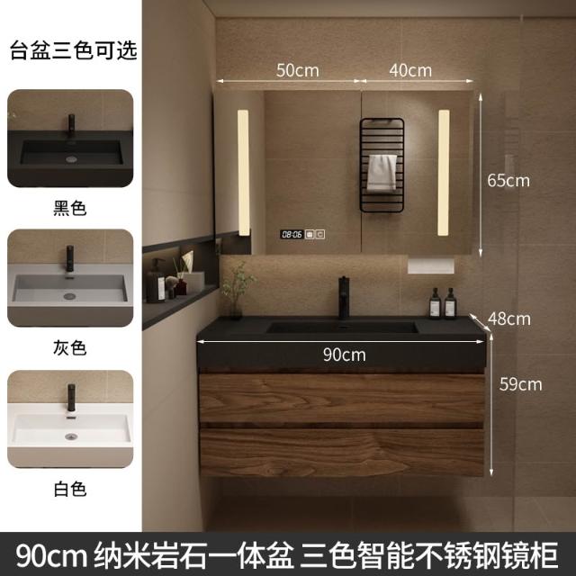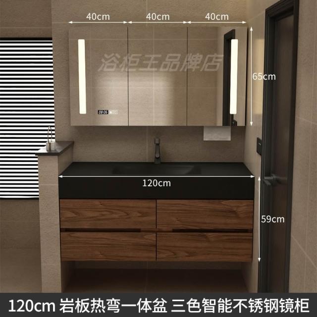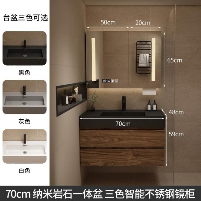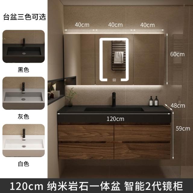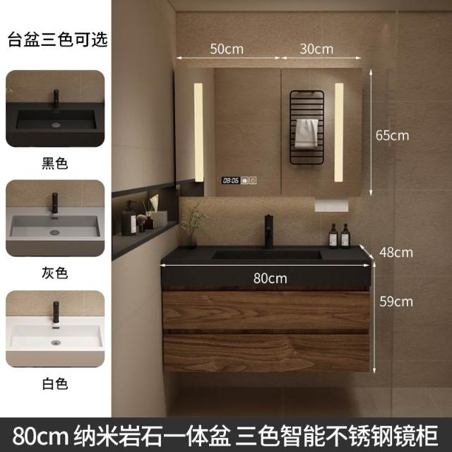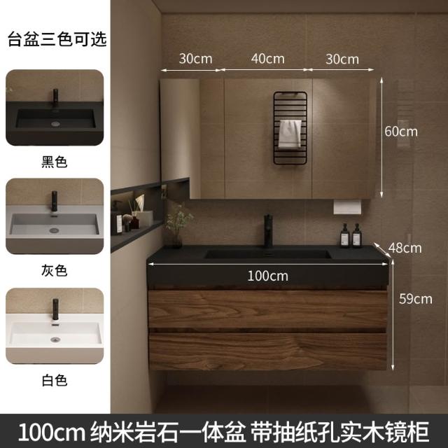 黑胡桃木色浴室櫃組合衛生間洗漱臺洗手池岩石一體洗臉盆潔具法式