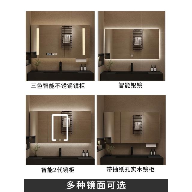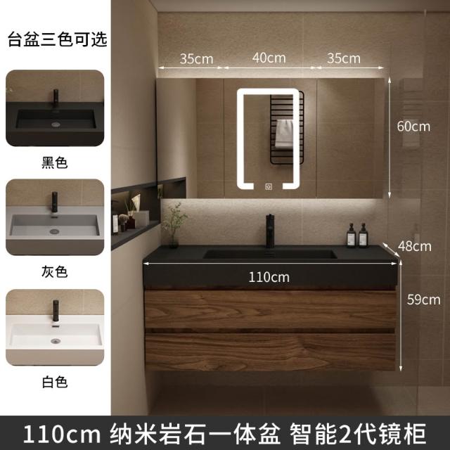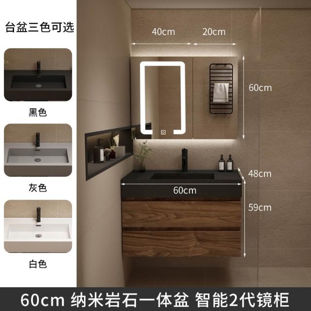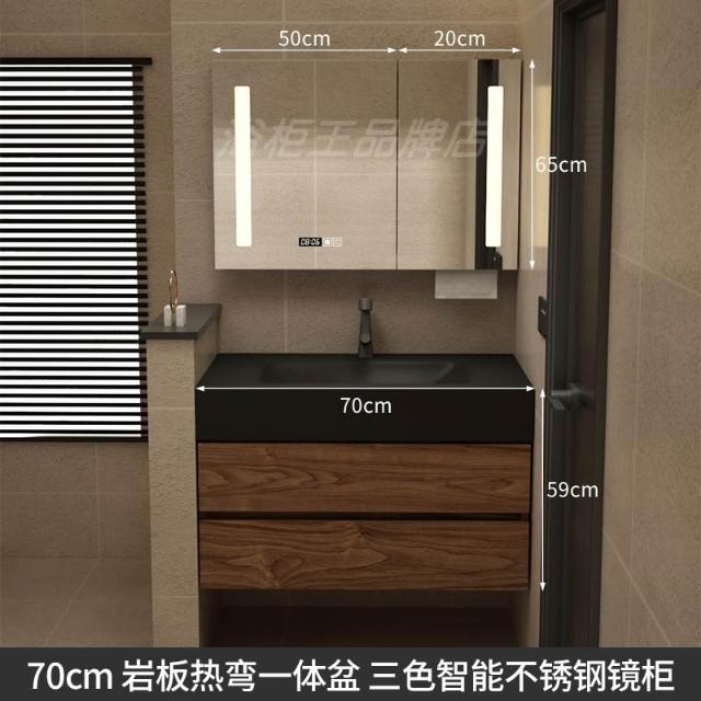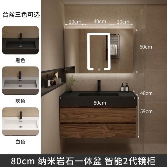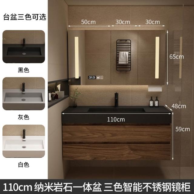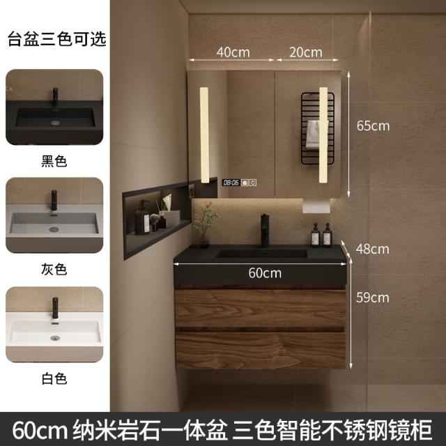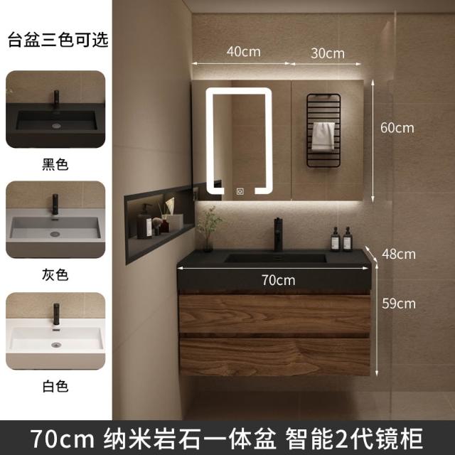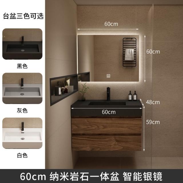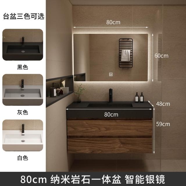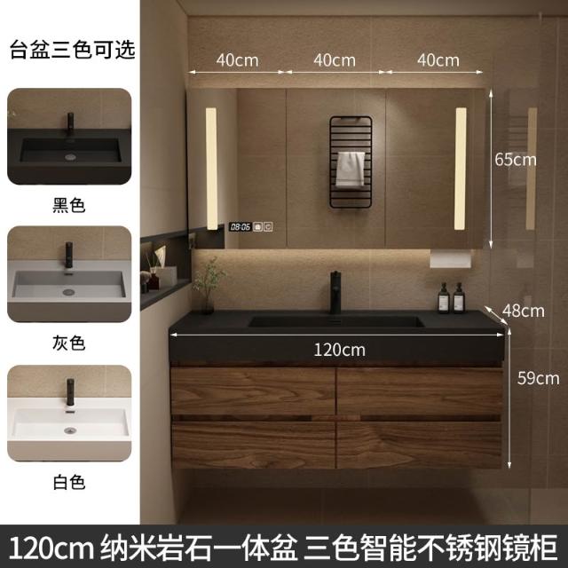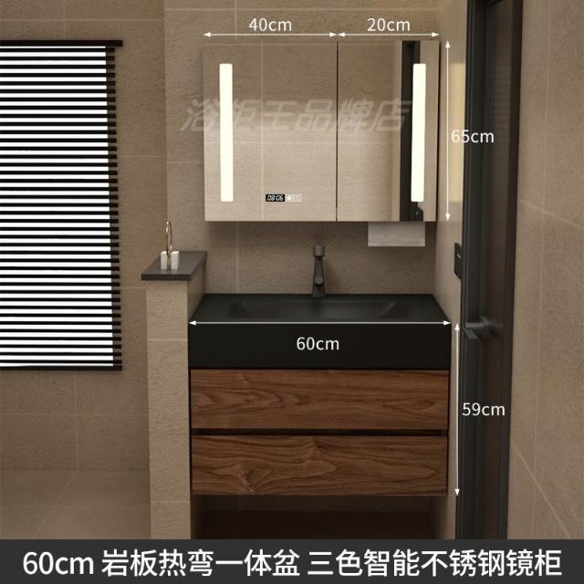黑胡桃木色浴室櫃組合衛生間洗漱臺洗手池岩石一體洗臉盆潔具法式