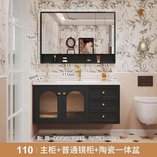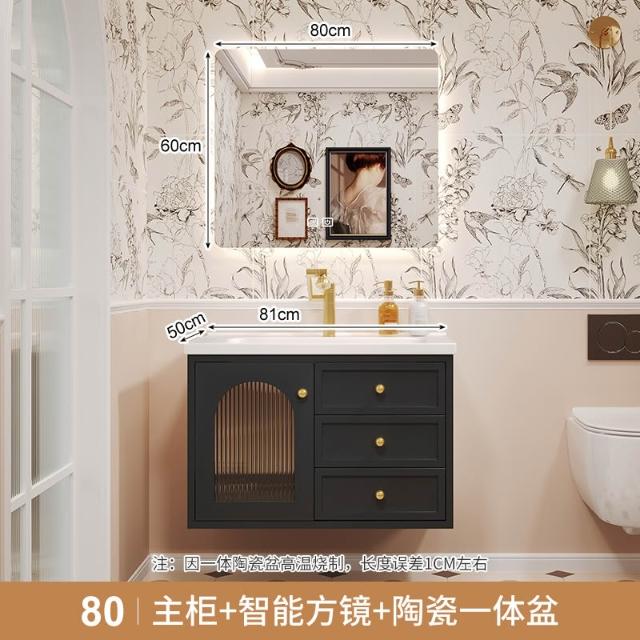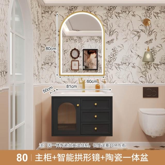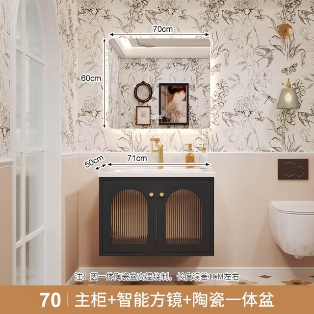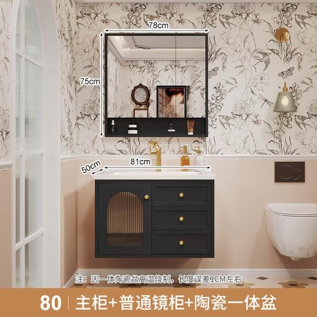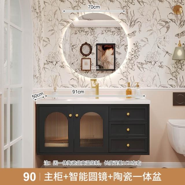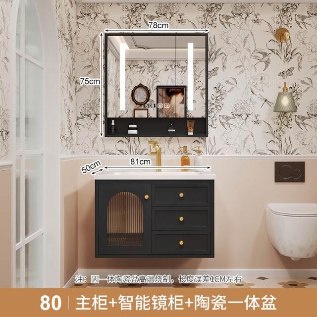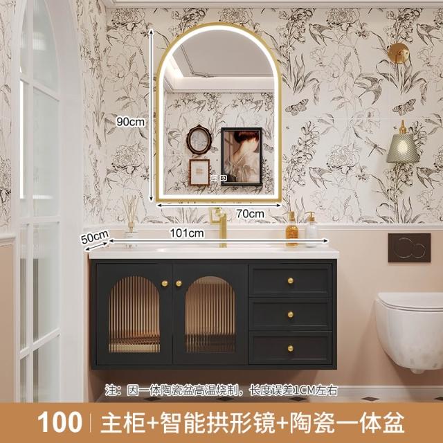 橡木法式復古浴室櫃陶瓷一體盆衛生間洗臉洗手盆櫃組合洗漱臺美式
